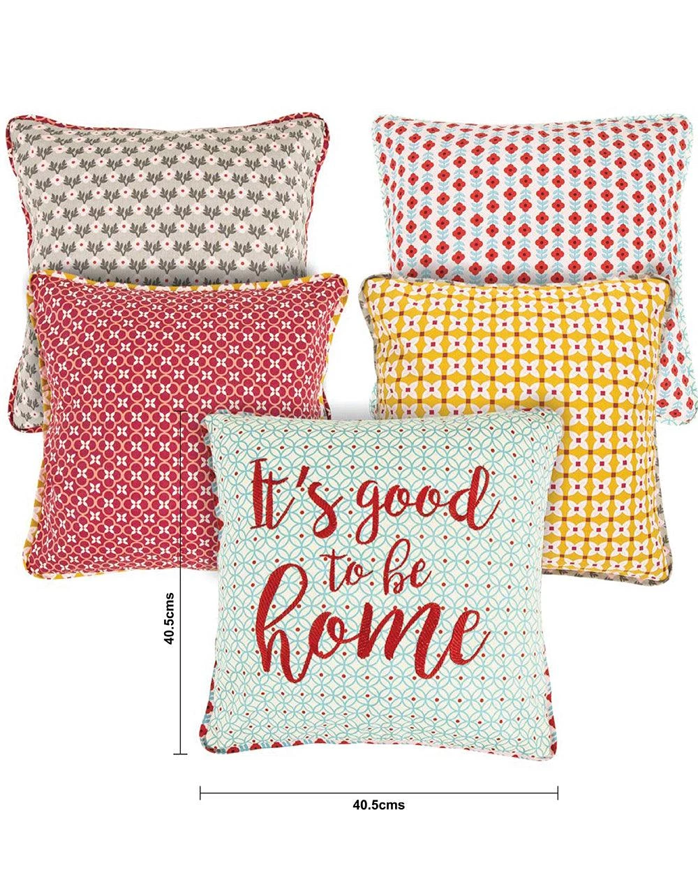 Afternoon Picnic Cushion Covers Set forms the perfect companion for your sofa. Made from cotton, this set of 5 cushion cover is ideal for 16″ cushions & can be placed on just about any place you can think of.