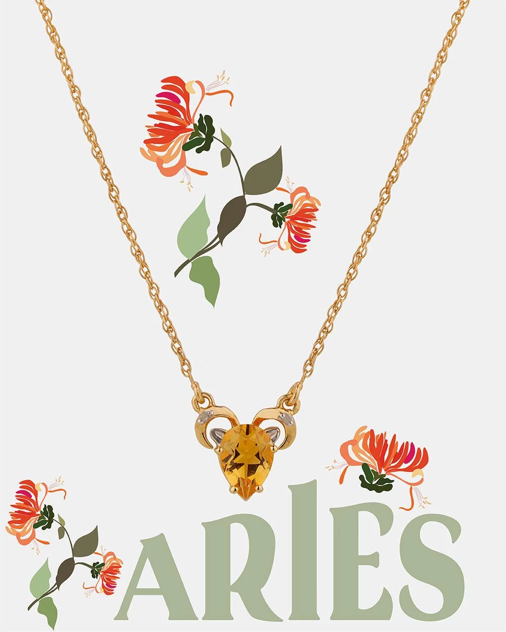 Star signs are the most exciting part of astrology and we decided to have some fun with it.Handcrafted in sterling silver and real gold plating our range of zodiac necklaces is a must have. Citrine, the birthstone of Aries set with diamonds hangs delicately with the symbol of Aries from a gold-toned sterling silver chain. Wear this dainty necklace like your second skin – a talisman to bring you luck in the new year.