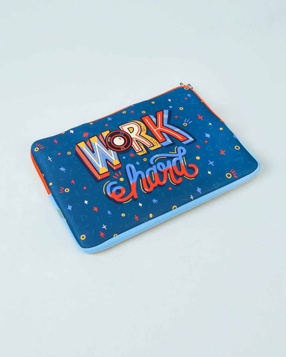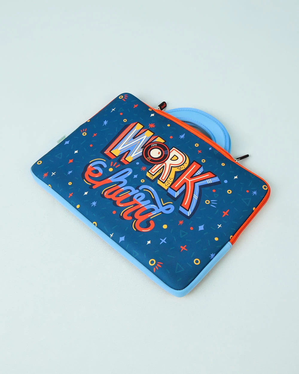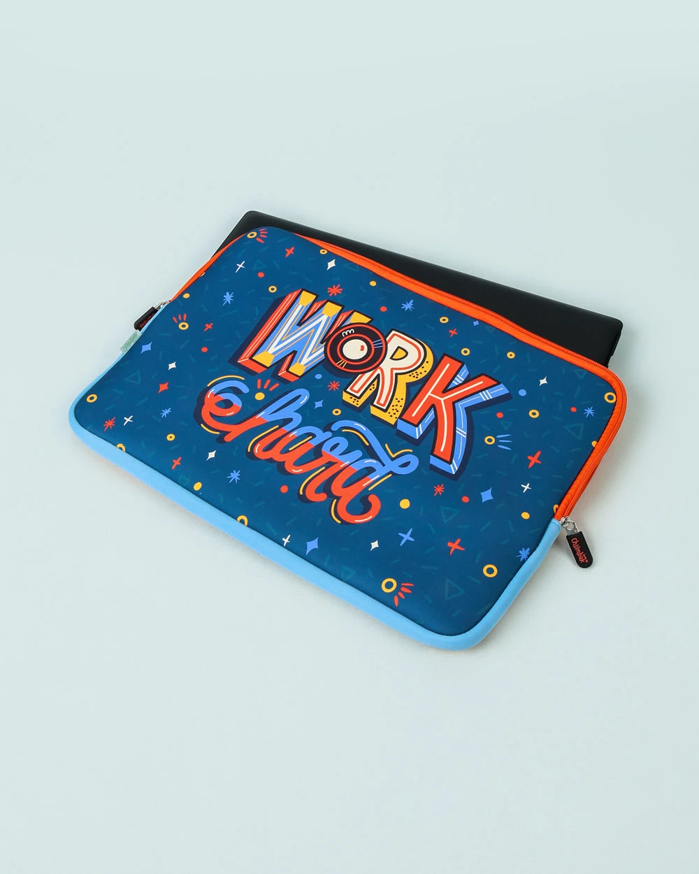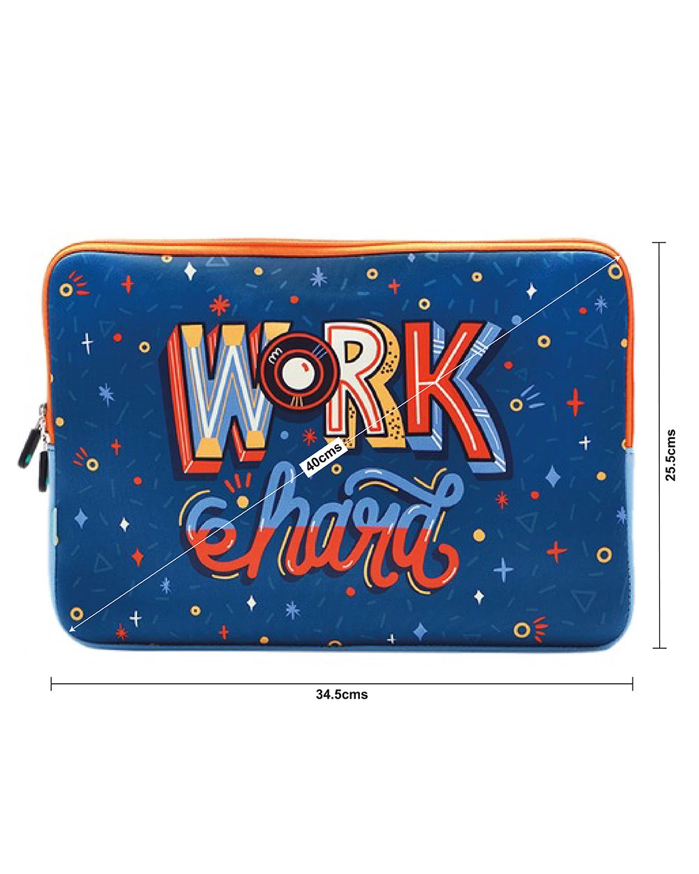 Carry your laptop in style with Work Hard 13.3 ” Laptop Sleeve. Made from Neoprene, this sleeve will keep your laptop warm and dry. The soft lining keeps it scratch free. Spacious and sturdy, the sleeve fits laptop of 13.3″ screen size. he two handles make it easy to carry around and can be tucked inside when unused & has 80% zip closure during usage of handle.[Disclaimer: May not accommodate laptops with large bezels, please check dimensions against laptop dimensions.]