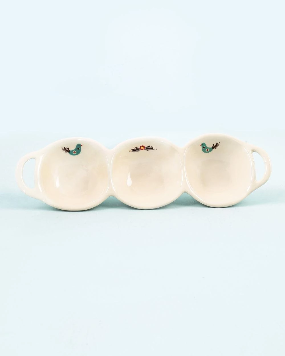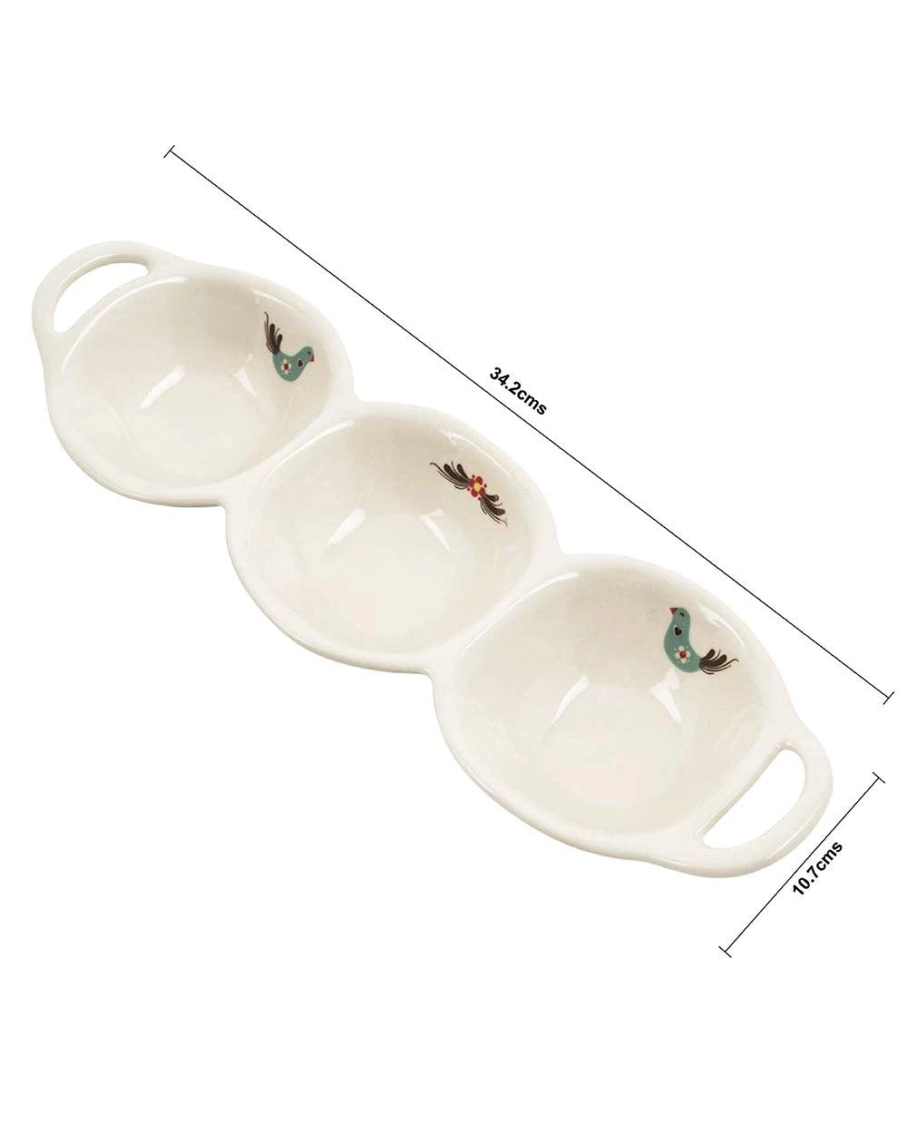 When serving your crowd-favourite munchies, don’t leave behind this minimal, ivory dip platter that’s perfect for all those delicious condiments! Made from stoneware, this platter is ideal for when you’re having a fun gathering at home with friends and family.