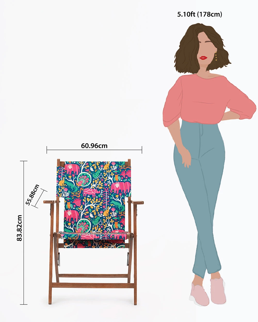 A statement piece from the House of Chumbak, this exotic and comfy folding chair lets you unwind elegantly and brightens up any corner of your house. Crafted with Mango wood, this cozy folding chair can be perfectly placed in your lawn, balcony or by the patio for an adorable vibe.