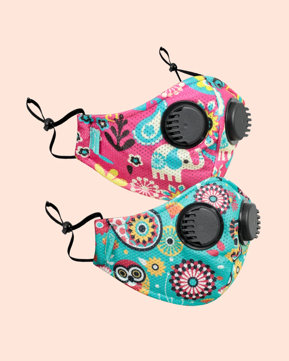 This pack contains set of 2 face masks for kids. It comes with a pouch that is available in five colours – Red, Blue, Yellow, Teal and Olive (colour may vary). These masks are designed and made in India.