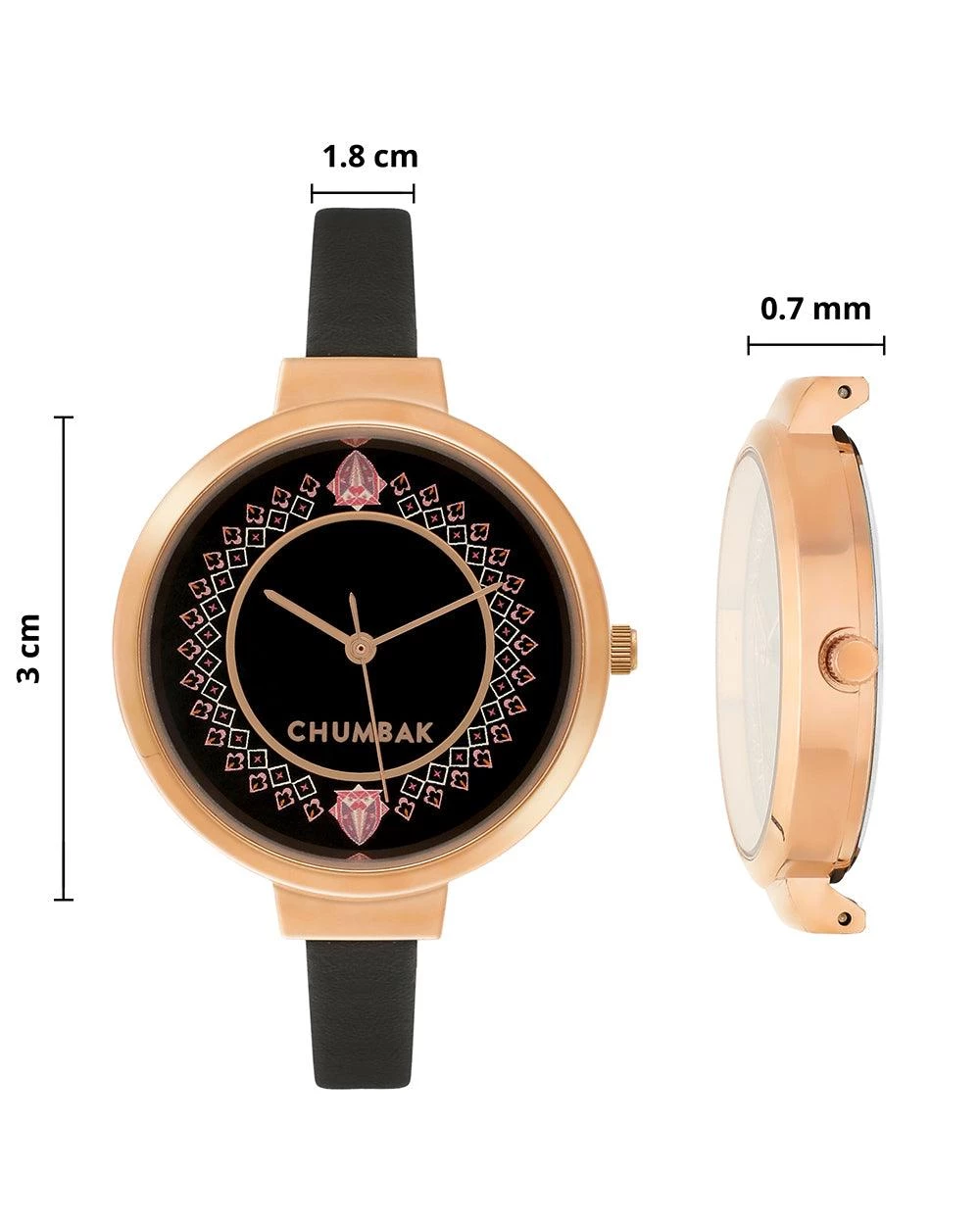 Make a statement with this Chumbak designed, vintage black & gold watch. A stunning addition to your watch collection, it comes with a set of 3 bracelets that makes it both playful & elegant. This is an original Chumbak-design, it comes with a PU strap and brass dial with Citizen 2035 movement. Our watches come in a joyful vintage tin packaging, perfect for gifting.