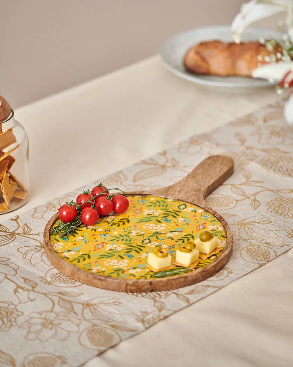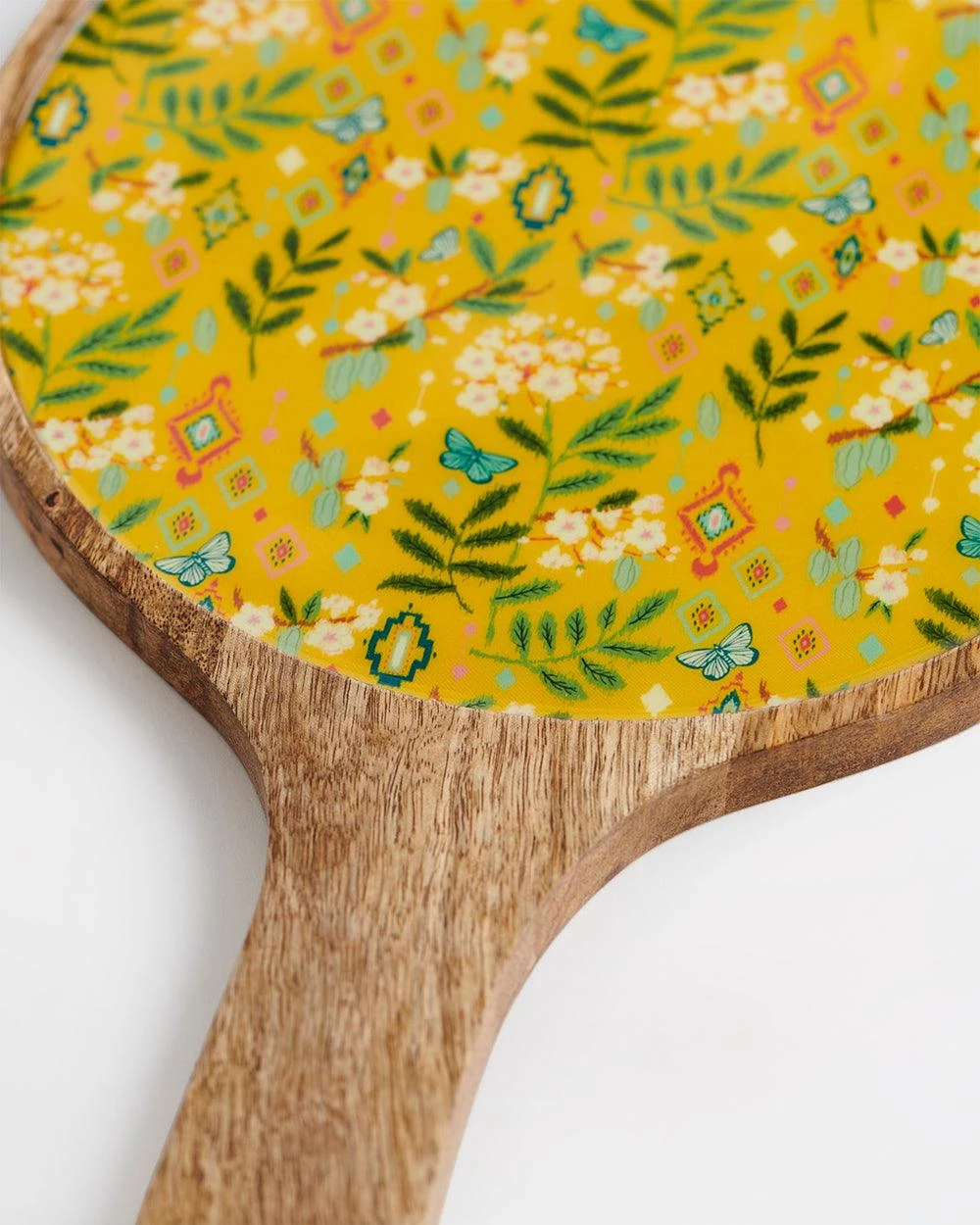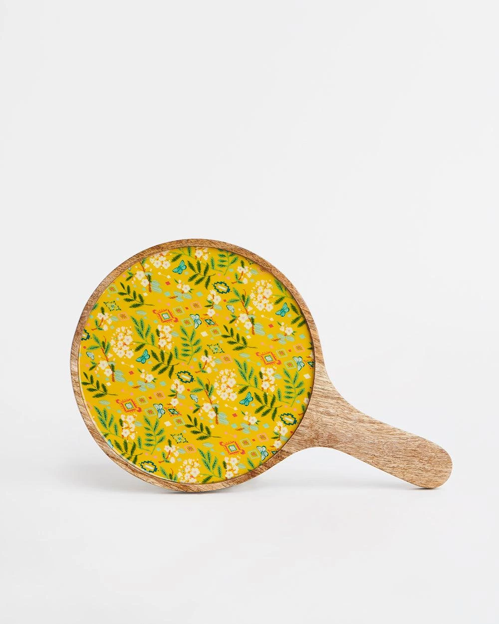 Take a bite of positivity every time you use our Country Cheese platter – Farm Garden. It has a Mango wood base and an original Chumbak design floral print on it with clear enamel and food-grade lacquer. It will be perfect for serving garlic bread, pizza, fresh cut fruits, assorted cheeses, muffins, and so on at your next get-together or backyard brunch. Pair it with our Country Wooden Snack Bowls to complete the set! Disclaimer: The color of the actual product delivered might vary slightly from the image shown as this product is handmade and each piece is unique. Disclaimer : Colour of the actual product delivered might vary slightly from the image shown. As this product is handmade and each piece is unique.