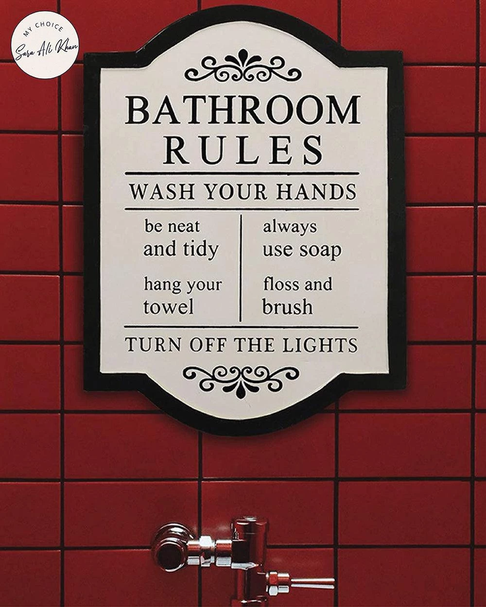 Bathroom Rules Wall Art ! Such a fun way to tell everyone you’re tired of cleaning after them.This Wall Art is Made of metal.