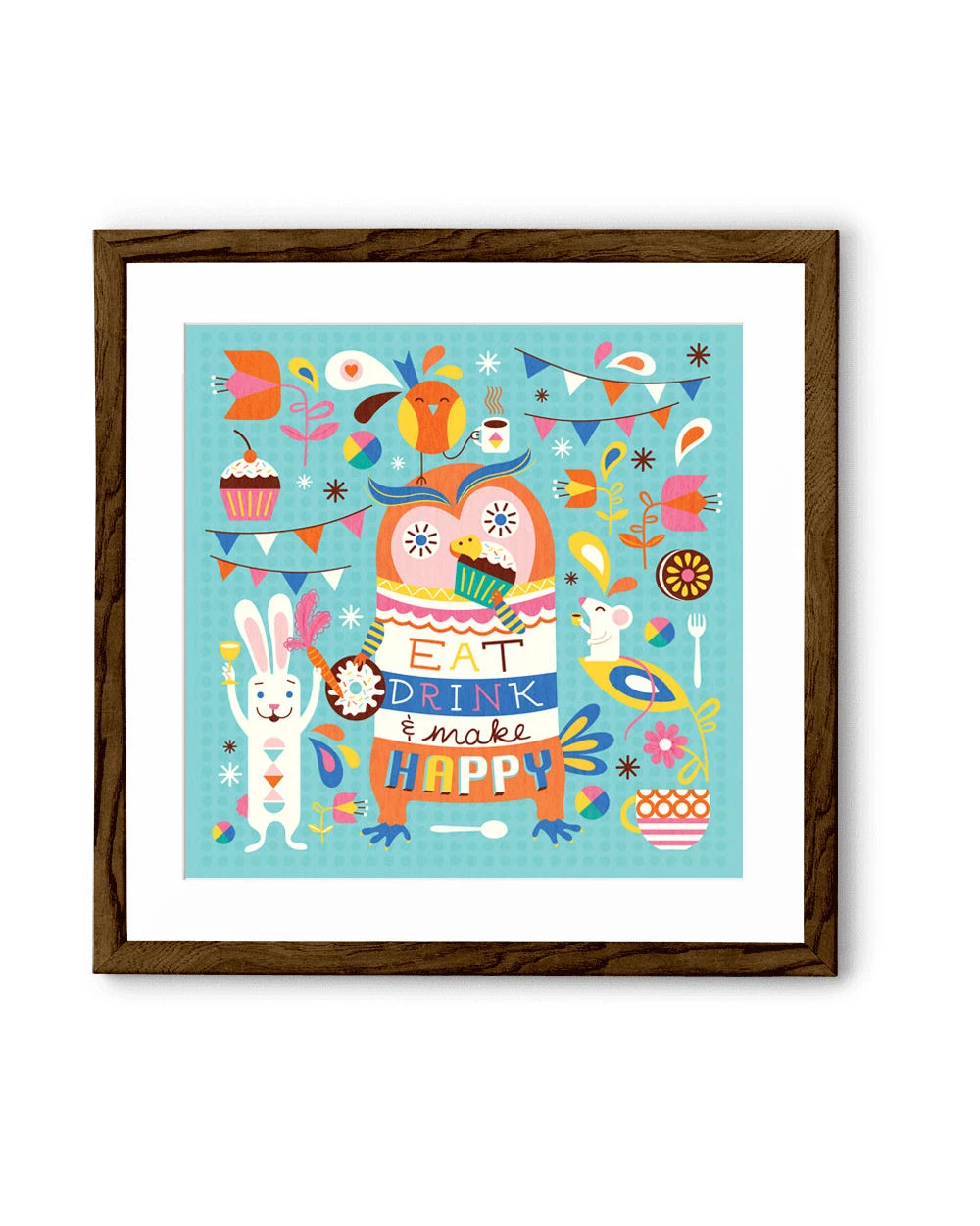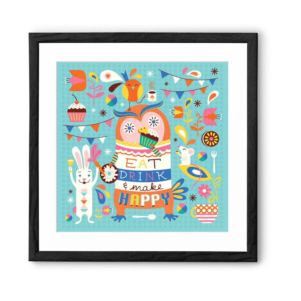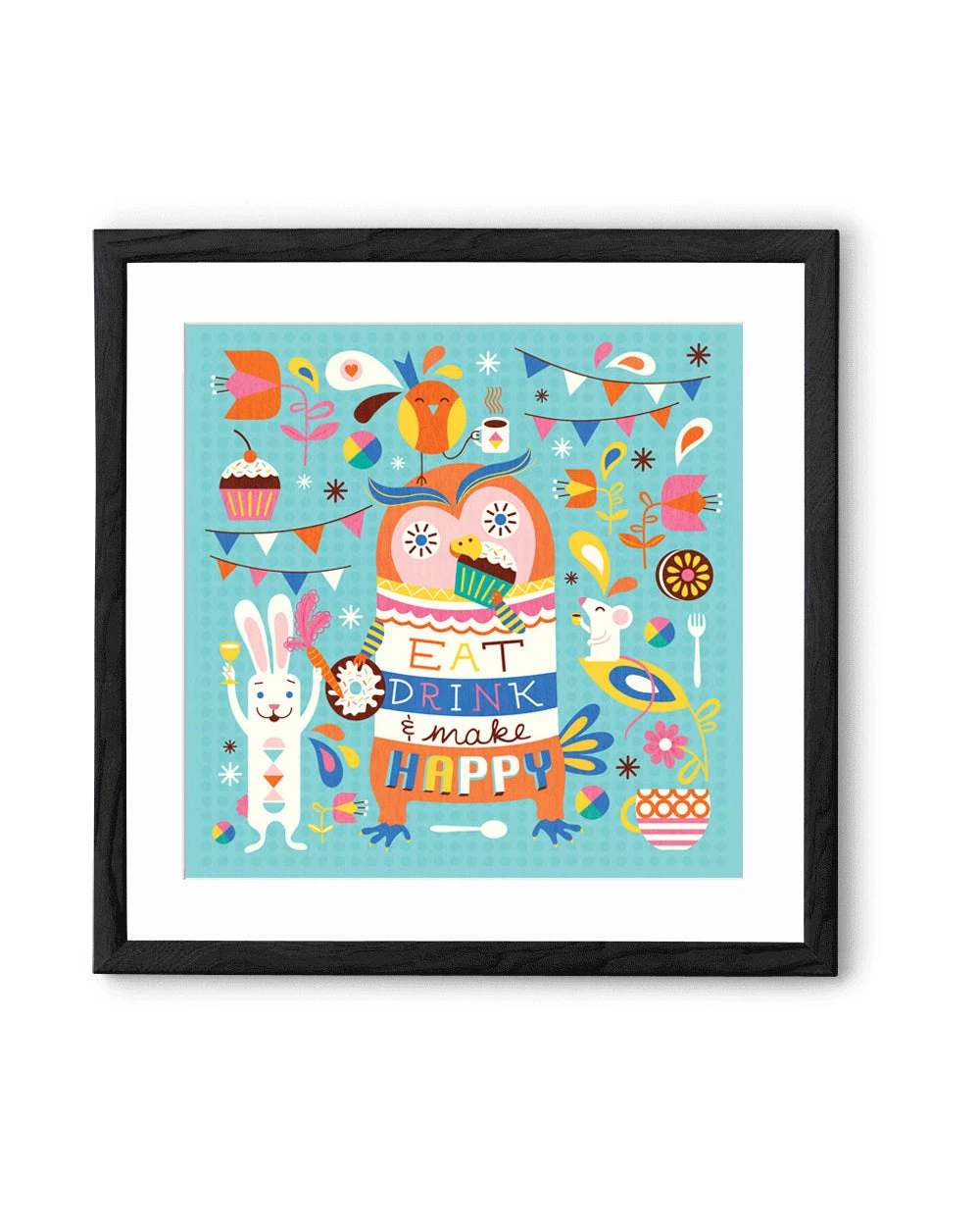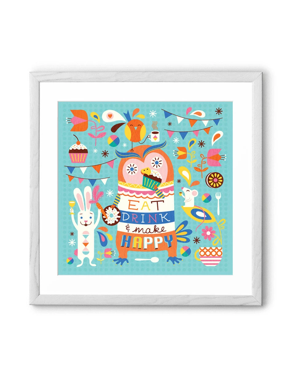 A Chumbak Original, the Make Happy Wall Art – Blue represents brilliant re-imaginations of the world around us. It has been created especially for you, printed on 100% acid and lignin free, cotton based papers using special pigmented inks. Depending on handling and viewing conditions, a print can have an anticipated life span of 50 plus years. (P.S: We also offer this stunning piece of art without a frame. If you’d like to buy the print alone, be sure to check the ‘X’ option under Frame Colour.)