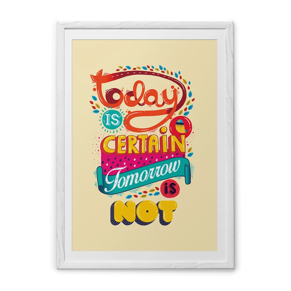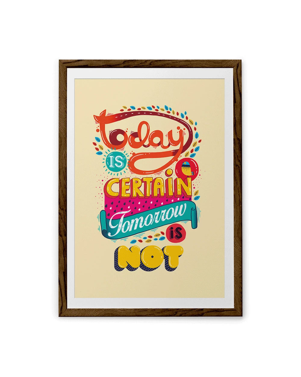 A Chumbak Original, the Today Is Certain Off White Wall Art represents brilliant re-imaginations of the world around us. It has been created especially for you, printed on 100% acid and lignin free, cotton based papers using special pigmented inks. Depending on handling and viewing conditions, a print can have an anticipated life span of 50 plus years. (P.S: We also offer this stunning piece of art without a frame. If you’d like to buy the print alone, be sure to check the ‘X’ option under Frame Colour.)