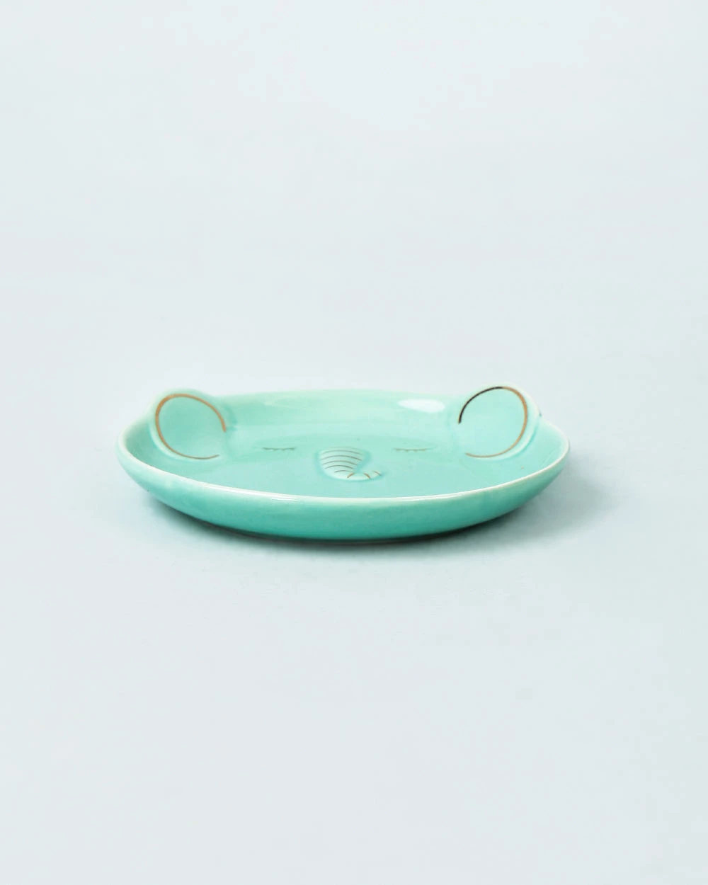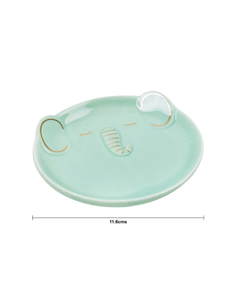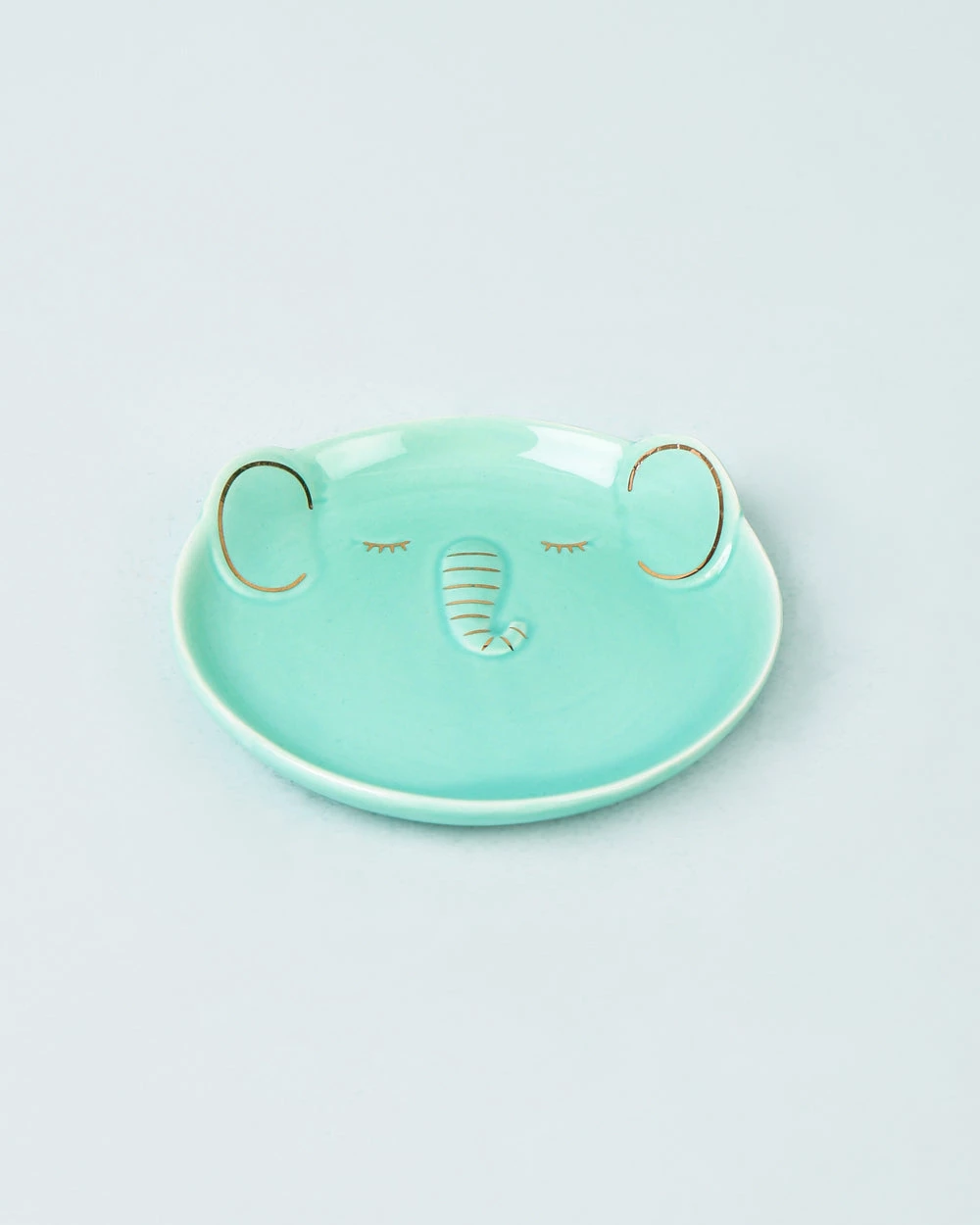 Serve all your delicious snacks and knick-knacks in this very pinteresty ceramic elephant plate. With a teal overcoat and gold marking, this plate fits right into your kitchen cabinet. Pair it with the rest of our Glad Elephant collection for the complete look.
