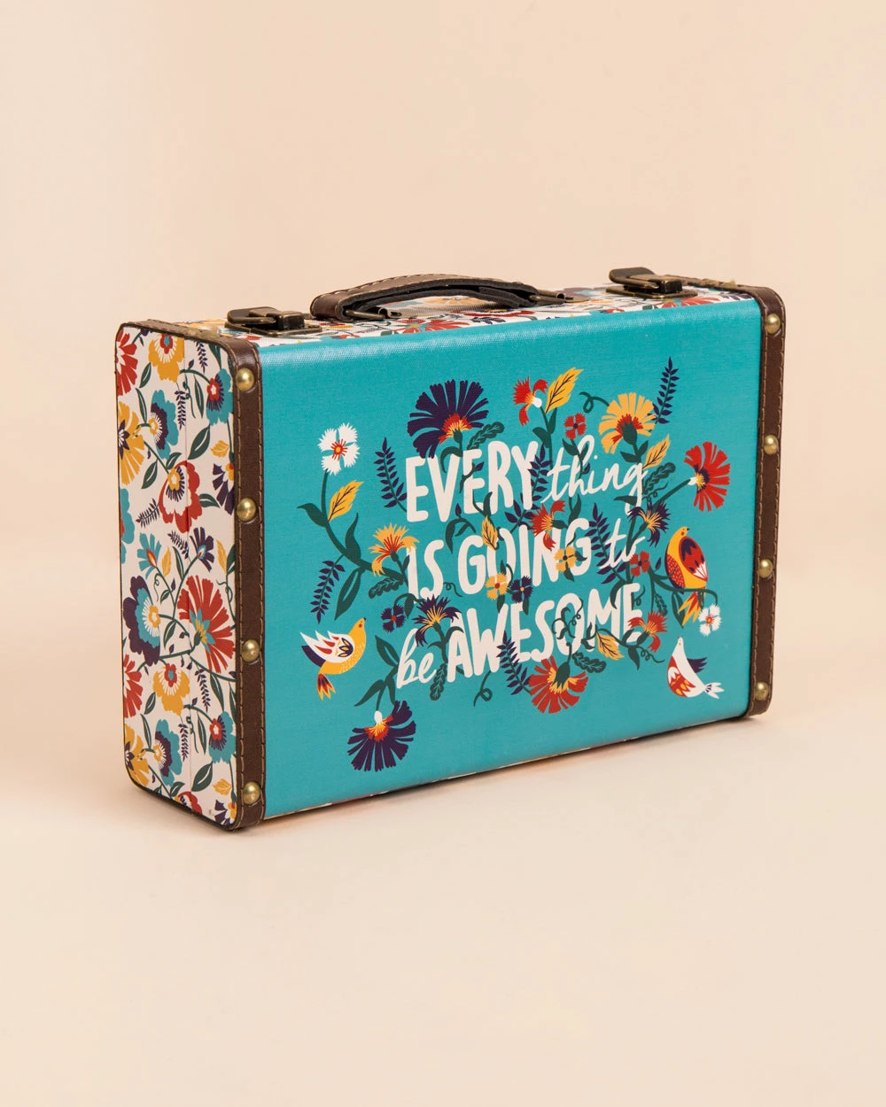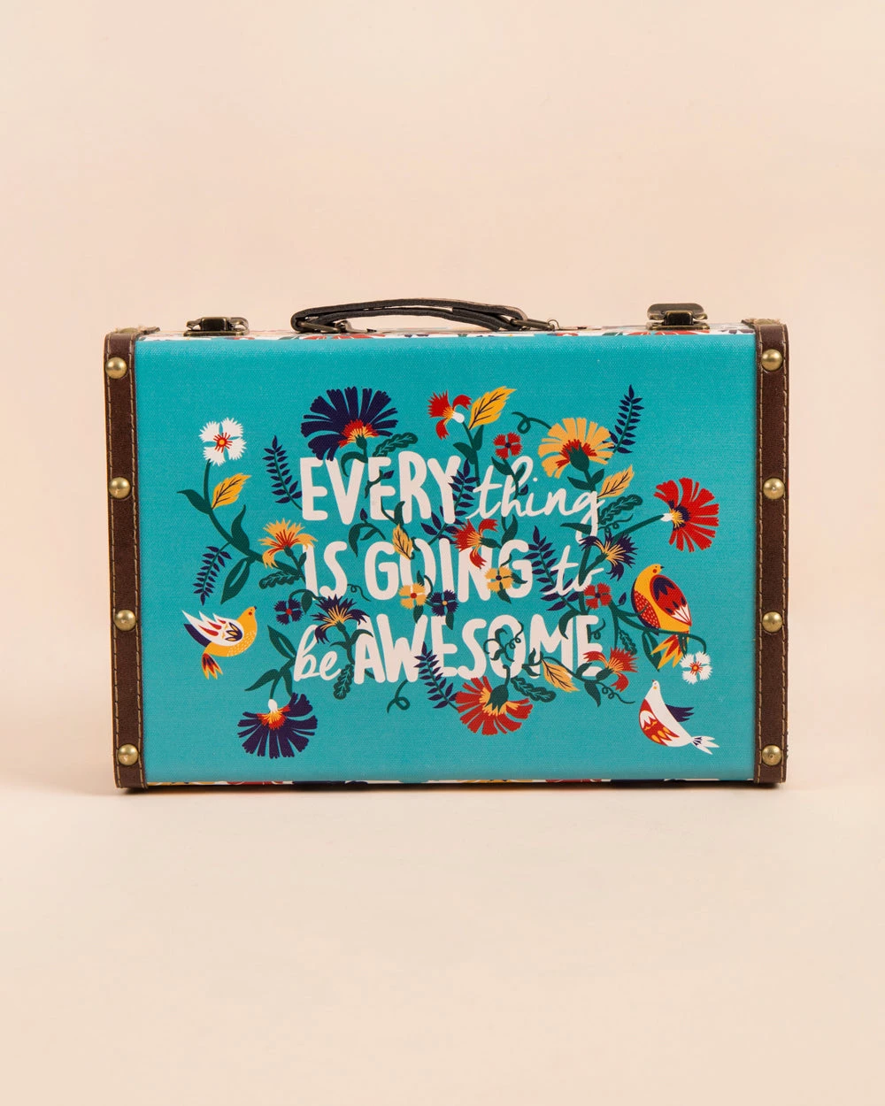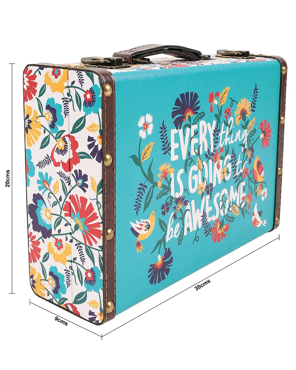 Want to add a vintage touch to your space? Want to store away your belongings safely and stylishly? Everything Is Going To Be Awesome Suitcase is just the product you need for all your need. Made form MDF & water-proof canvas, this suitcase has metal locks and hinges. Get decorating now!