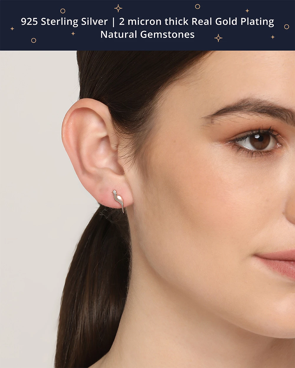 Our Flights of Fancy studs, is the only dainty detail you need to give you the wind beneath your wings. An understated, versatile accessory that adds sophistication to any outfit. Whether worn with a power suit or denim and tee, it will always add charm to your lobes. It is fashioned from gold-toned sterling silver in two tones with a glistening diamond for extra pizzaz. Get the Flights of Fancy necklace to complete this delicate set.