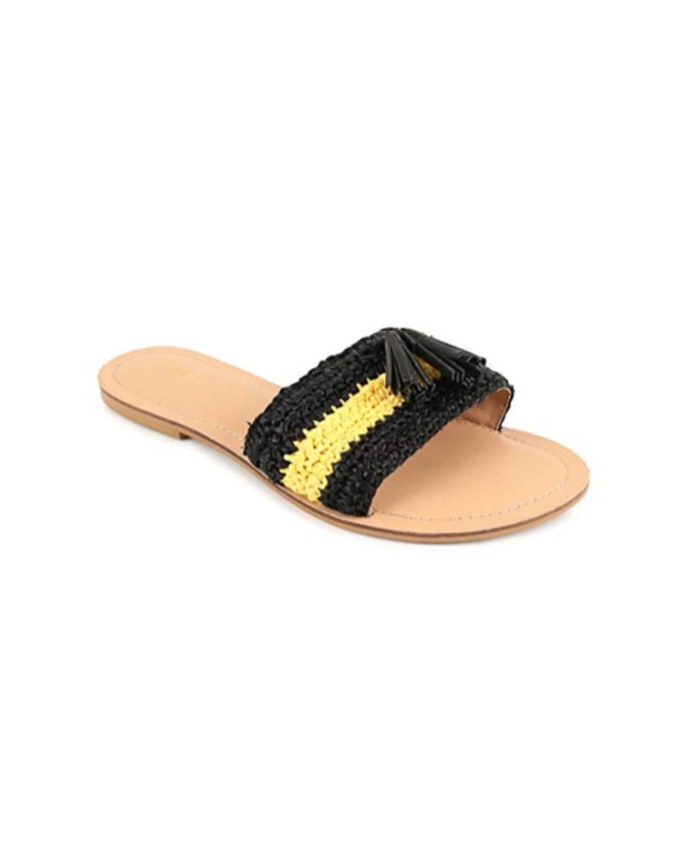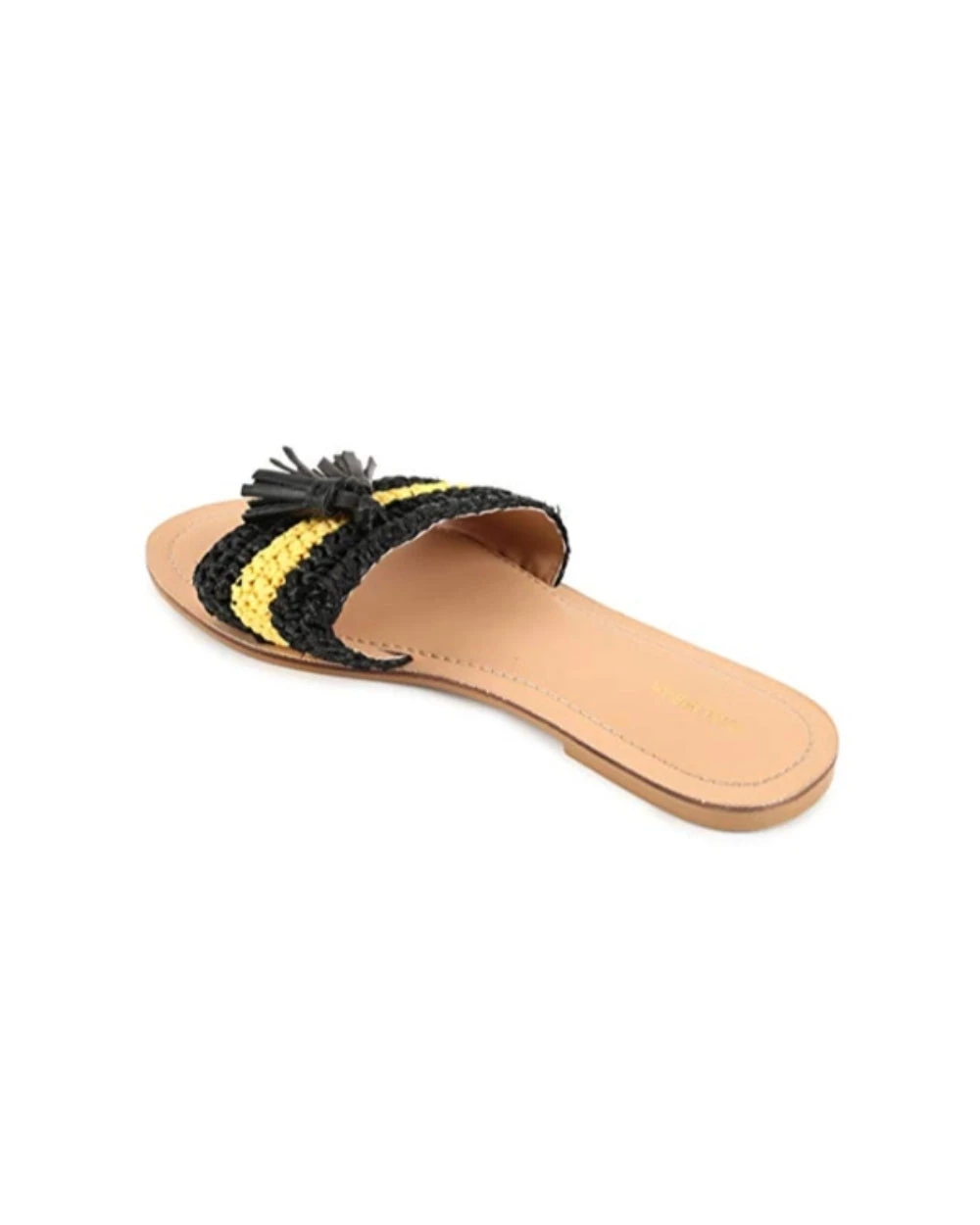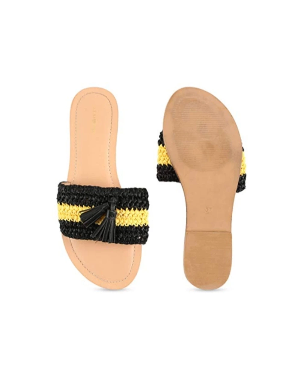 Tassel Embellished Honey Bee Sliders is an easy-going pair & is a combination of warmth and energy of sunny days. Thi pair is made from PU.