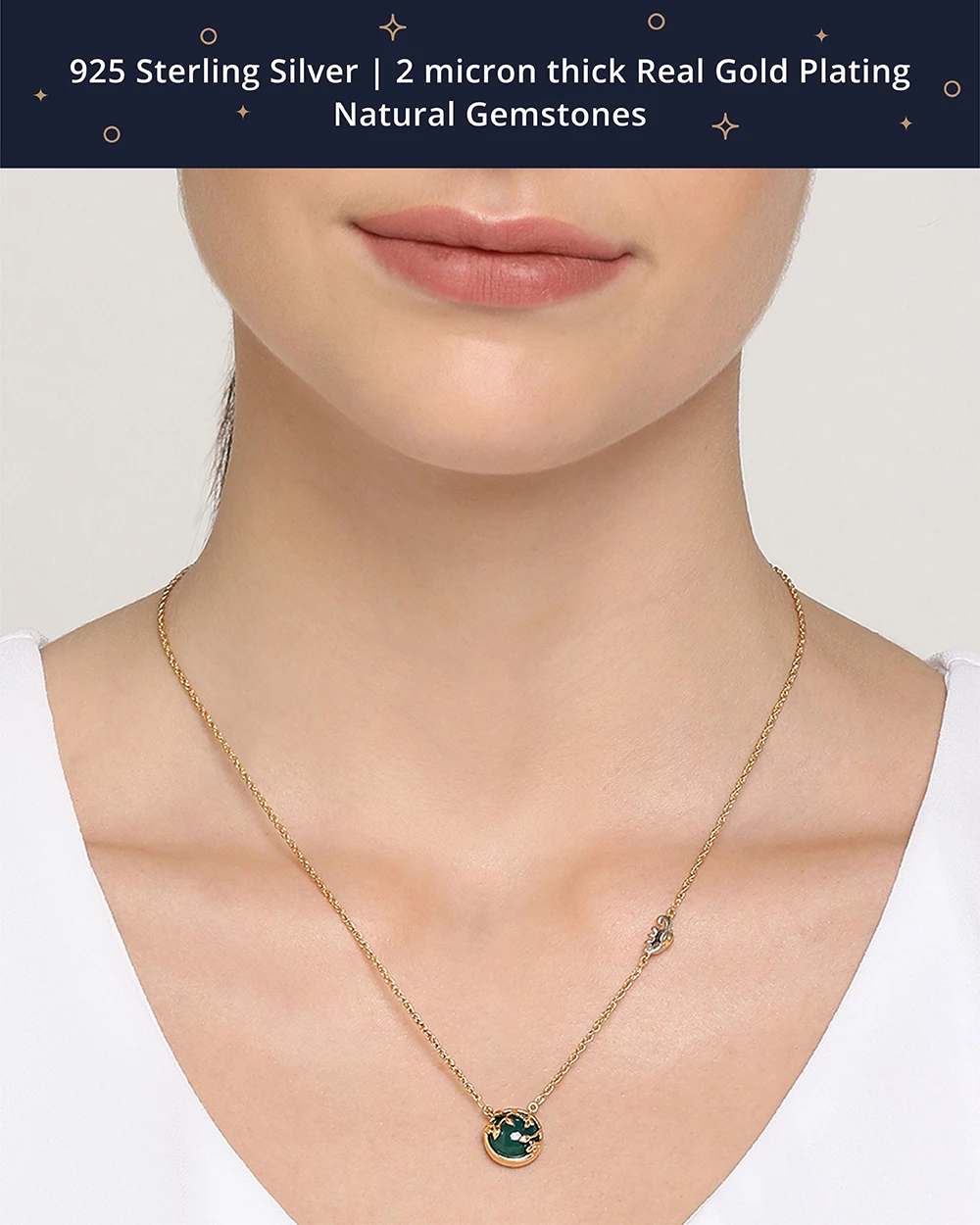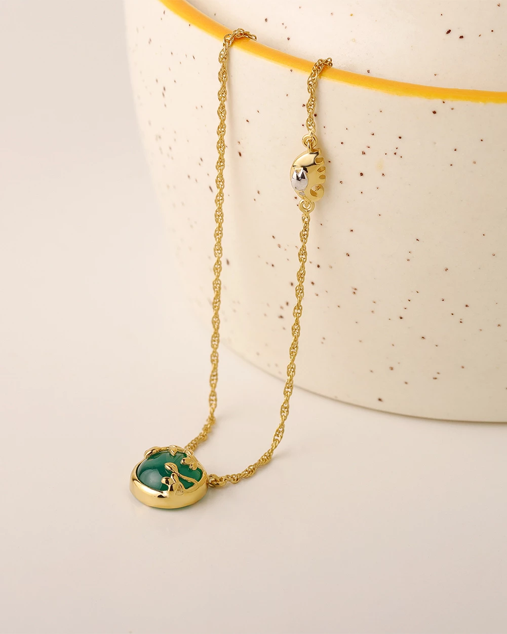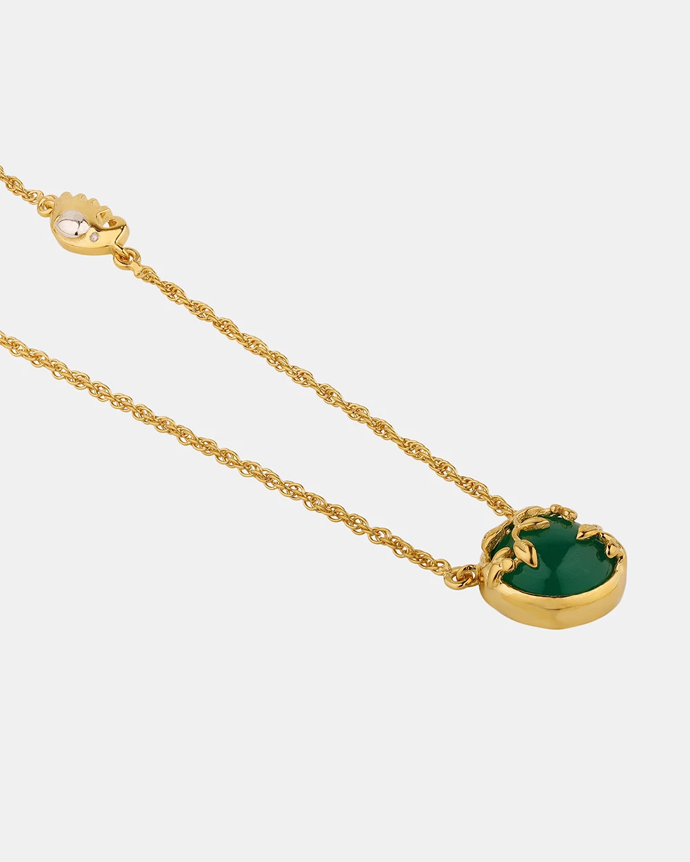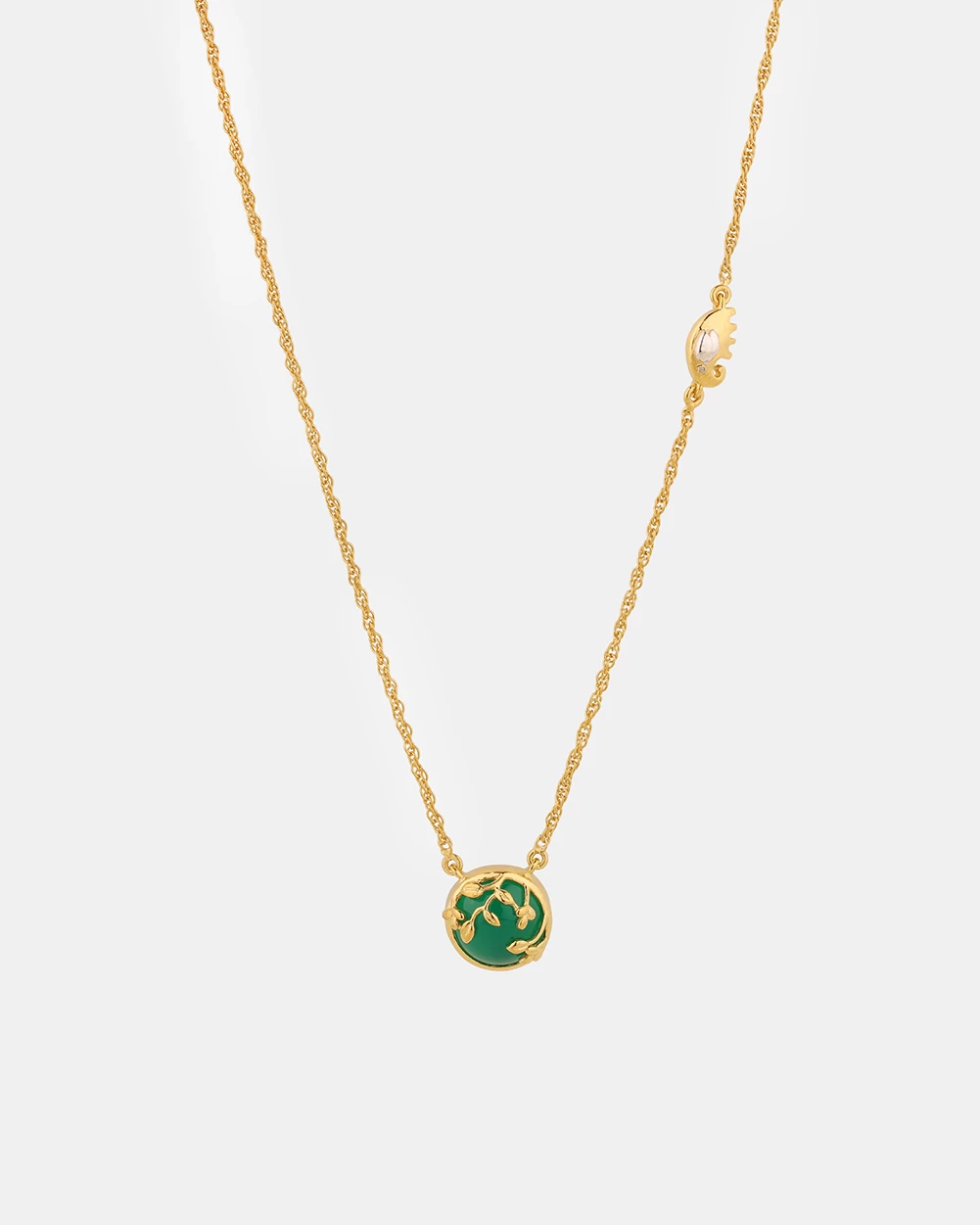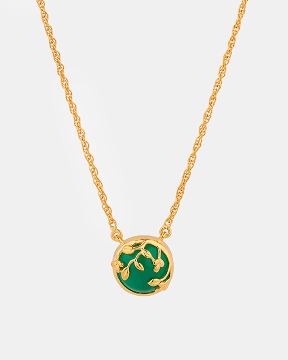The Forrest Sunrise Necklace is an arresting piece of jewellery that will hold a special place for you for years to come. An overlay of metal vines over the deep emerald of the cabochon cut green onyx inspired by a mystical forest in full bloom. A delicate gold chain helps the pendant take centre stage. Whether you wear yours with a T-shirt and jeans or save this show-stopping piece for special occasions, it’s time to invest now and love for a lifetime.