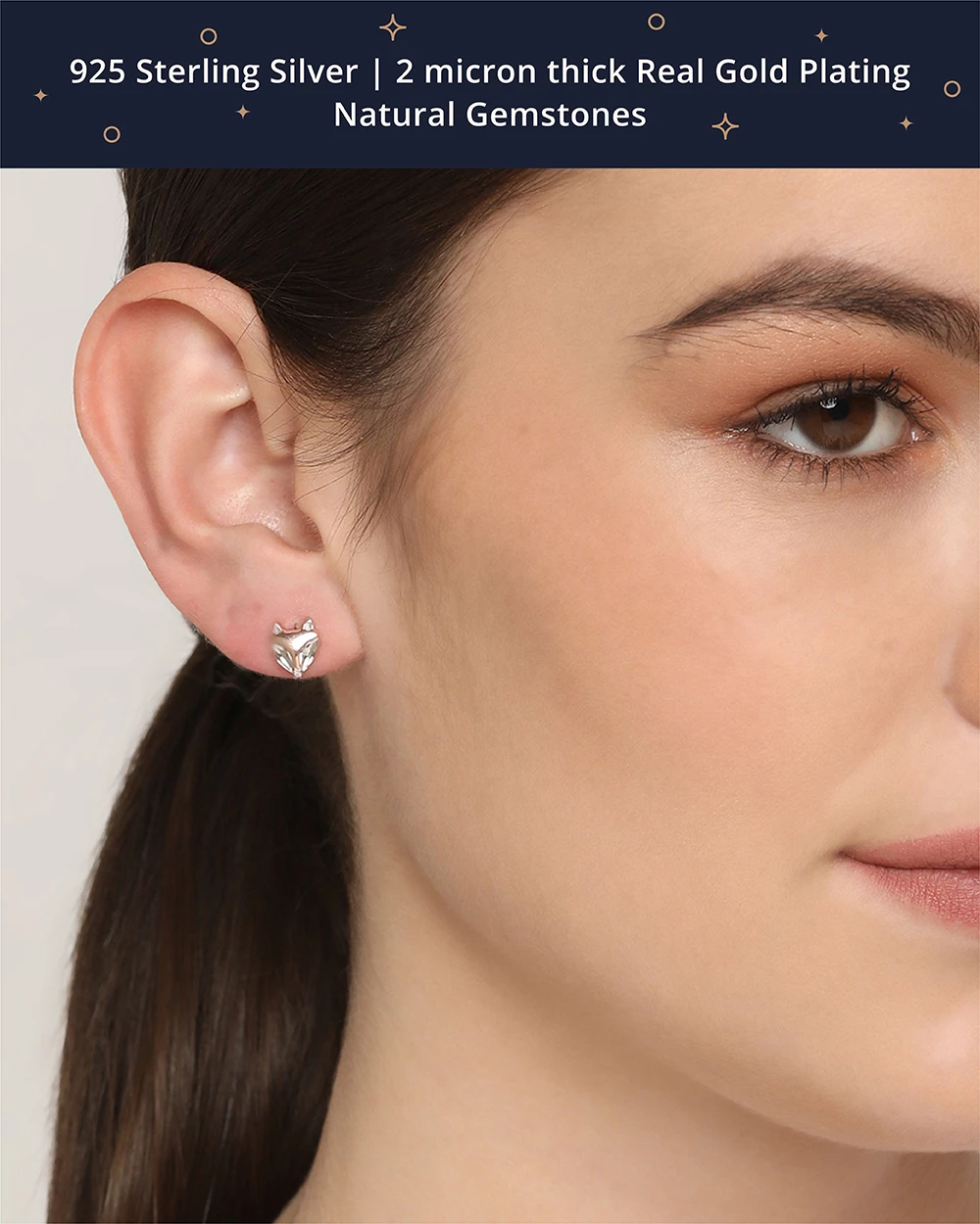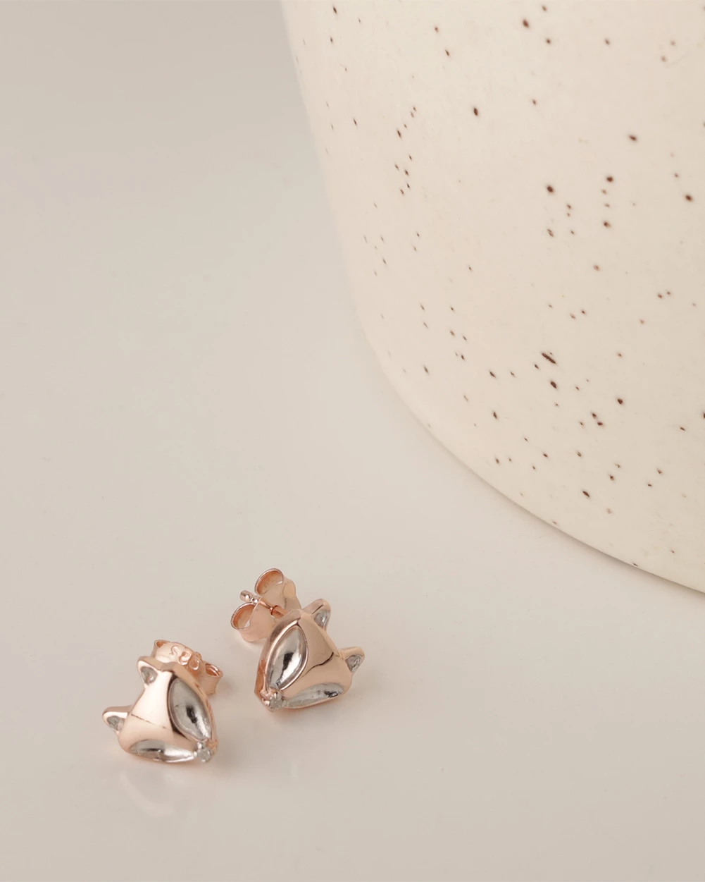 Our Foxy studs are all things contemporaray. These rose gold-toned sterling silver studs are given a sophisticated spin with intricately cut diamonds. These earrings inspired by this enchanted creature of the forest makes for a versatile everyday accessory for the girl on the go!