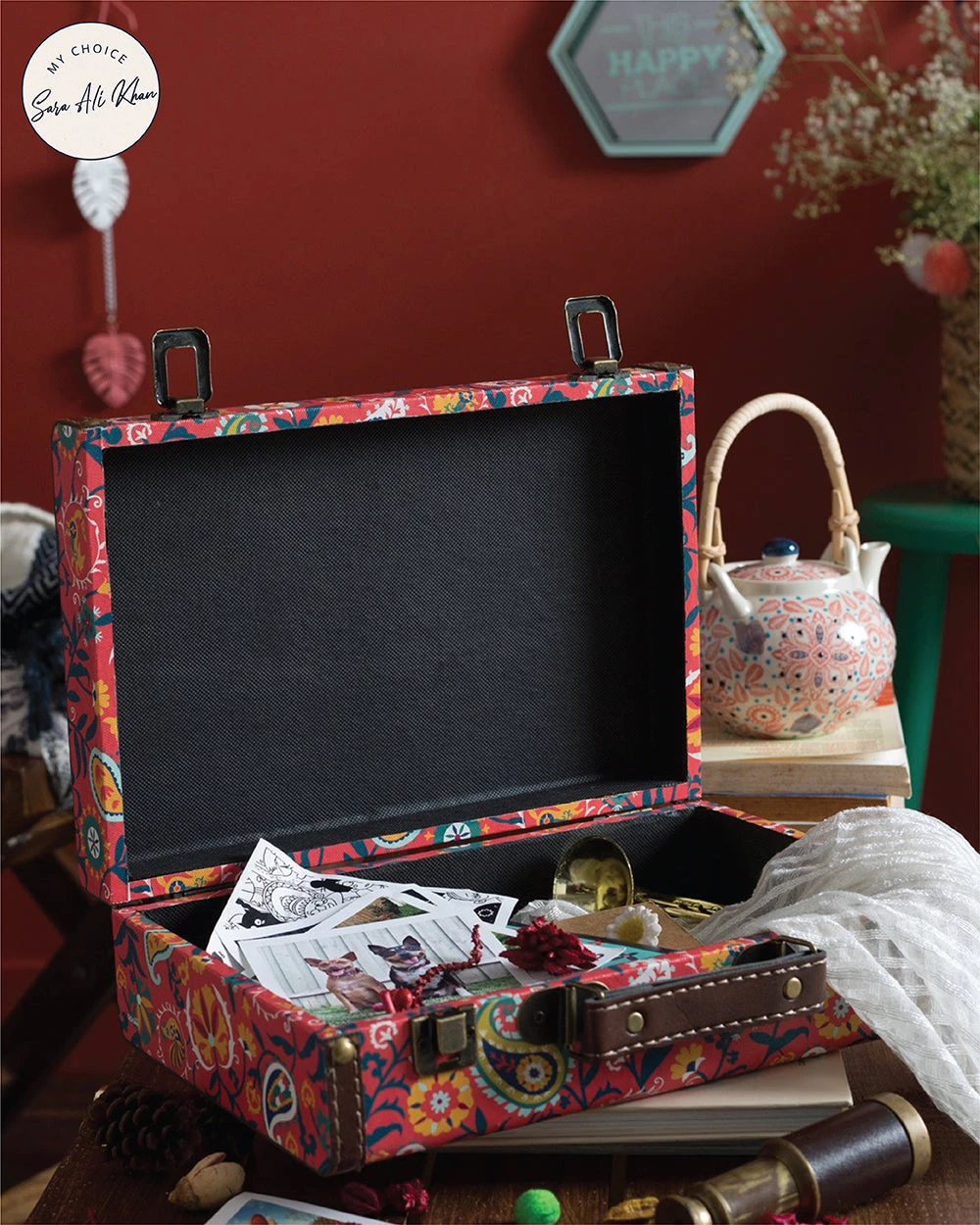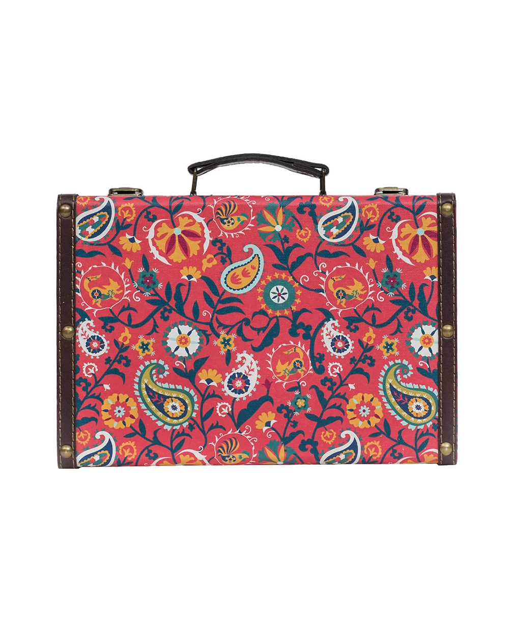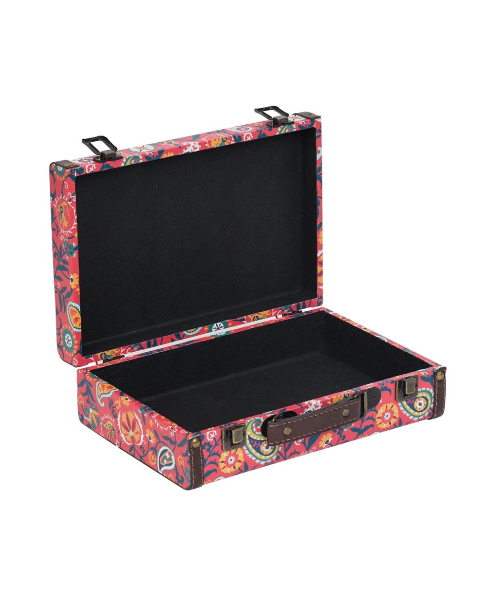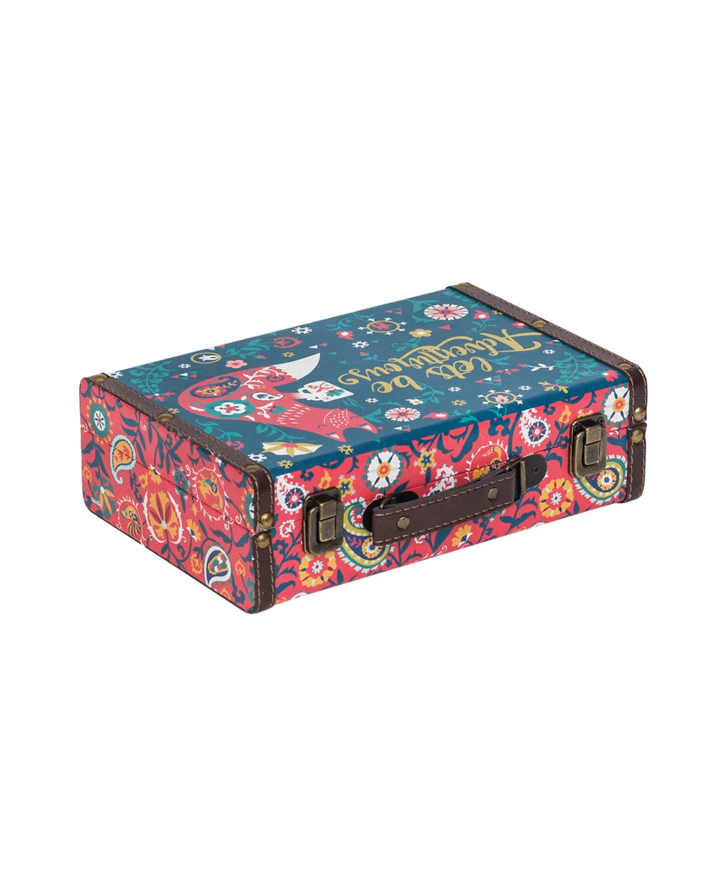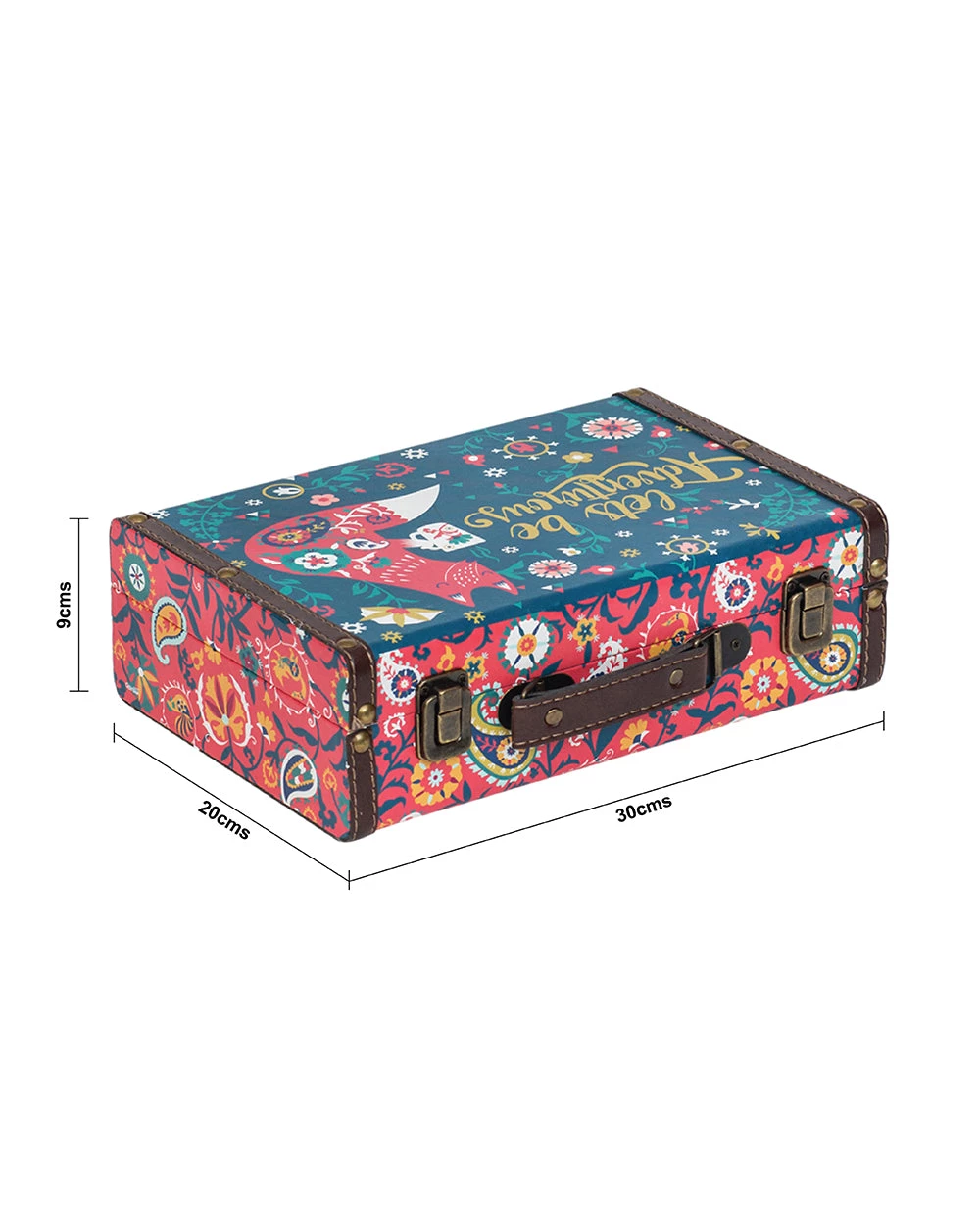 Want to add a vintage touch to your space? Want to store away your belongings safely and stylishly? Floral Fox Suitcase is just the product you need for all your need. Made fom MDF & canvas, this suitcase has metal locks and hinges. Get decorating now!