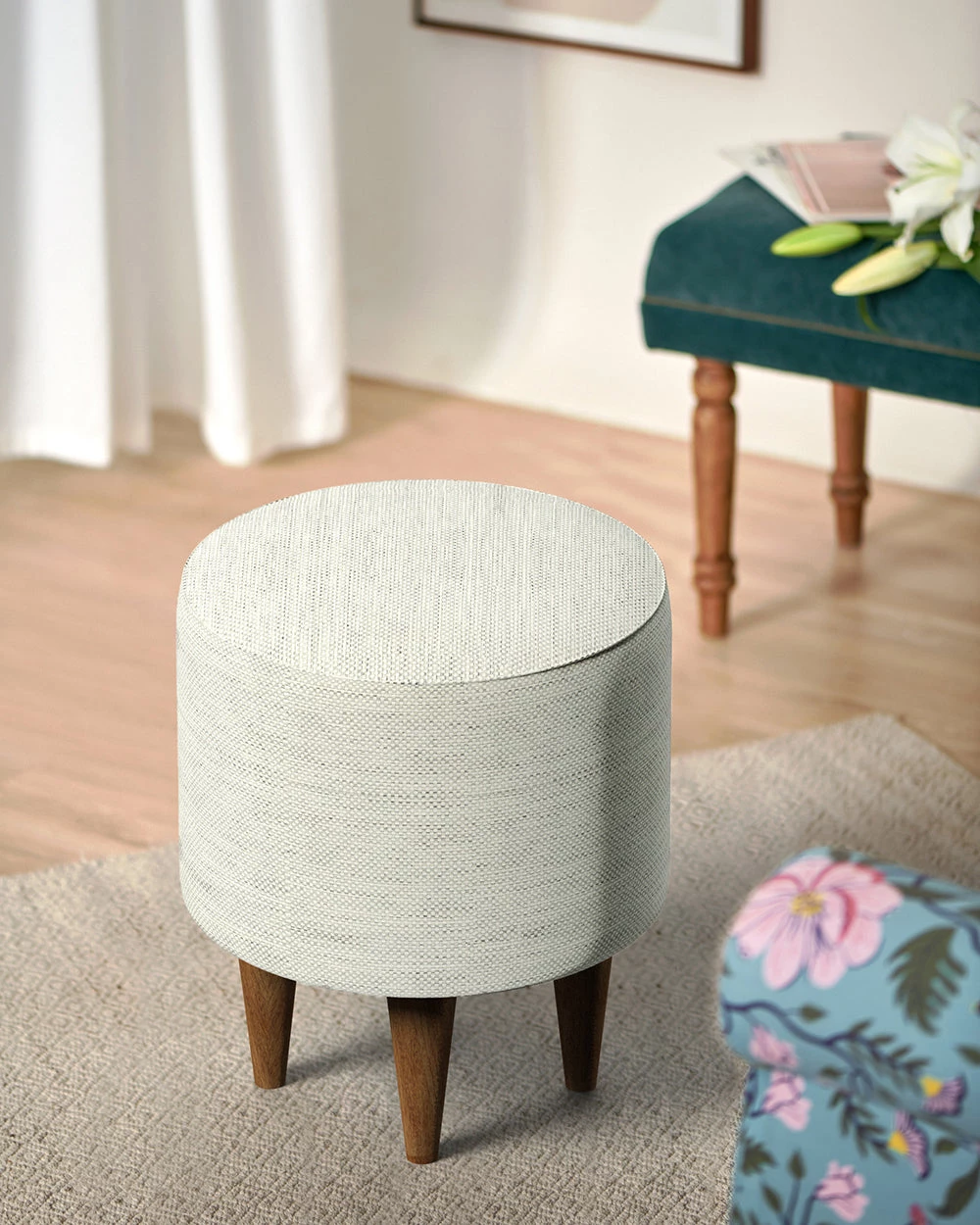 Our French Pouffe is a perfect blend of parisian culture paired with the very vibrant & joyful Chumbak aesthetic. Handcrafted with Sheesham wood and upholstered with high-density foam for utmost comfort and durability, our pouffe is the most versatile accent piece of furniture you can have in your home. You can use this as a foot rest, a bench for your dresser, or as a centre or end table in your living room.