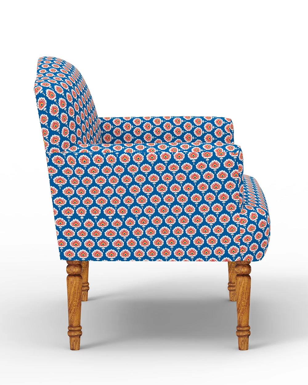The Chumbakdesign Nawaab Arm Chair is absolutely stunning! The blue ikat fabric is vibrant and adds a pop of color to my living room. It’s both stylish and comfortable, making it my new favorite piece of furniture.