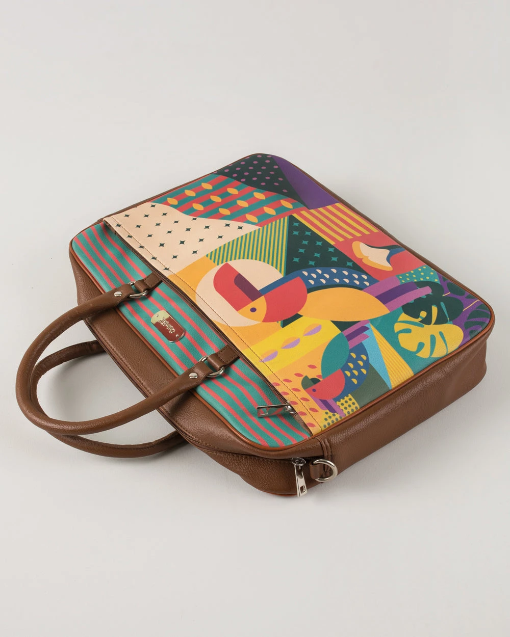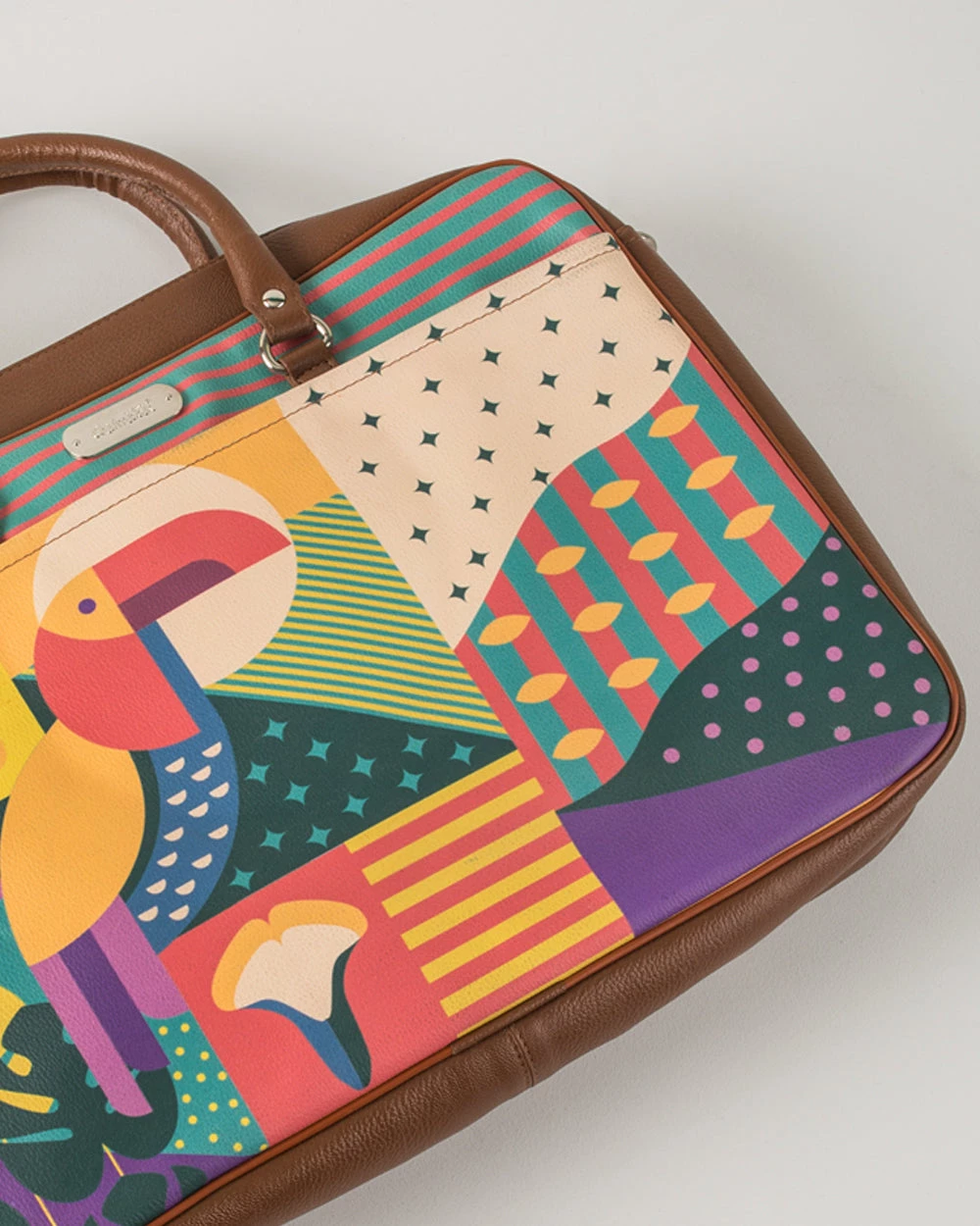 The toucan birds are becoming quite the rage and they insisted on being a part of this awesome Geo Bird Laptop Bag. The bag has a compartment for laptop which can accommodate laptop up to 15 inches size, a compartment for laptop accessories and a outer zipper pocket. The sling allows for greater functionality and the handles make it a breeze to carry around.
