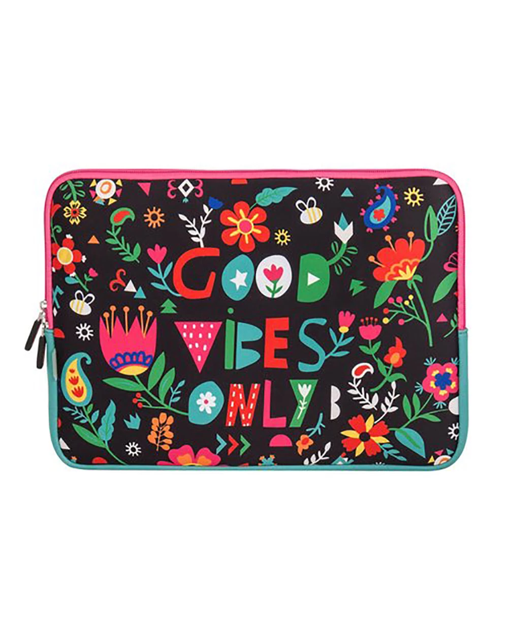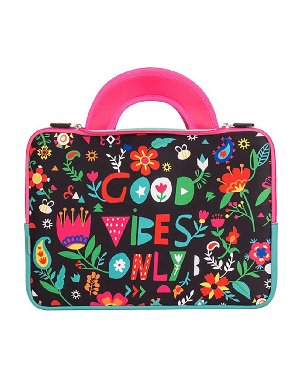 The Good Vibes 13.3″ Laptop Sleeve with gorgeous colours blends with beautiful prints to give your laptop the most stylish spin ever. Made from Neoprene and Fluff Lining, it will keep your laptop warm, dry and scratch free. Spacious and sturdy, the sleeve fits laptop of 13.3″ screen size. The two handles make it easy to carry around and can be tucked inside when unused & has 80% zip closure during usage of handle. [Disclaimer: May not accommodate laptops with large bezels, please check dimensions against laptop dimensions.]