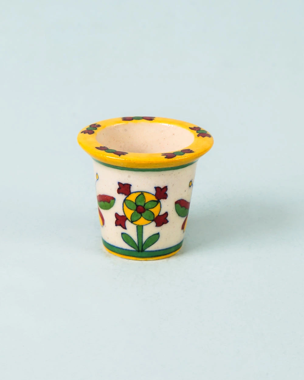 Painted with Indian colour tones Growing Fondness Planter makes a beautiful ornamental piece. Made of Ceramic, this planter is great for balcony, patio or entrance decoration and has a capacity of 50 ml.