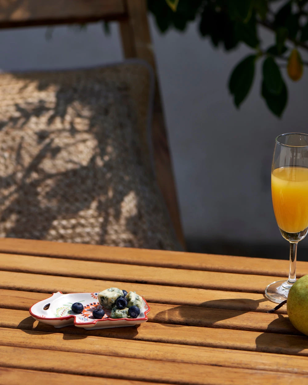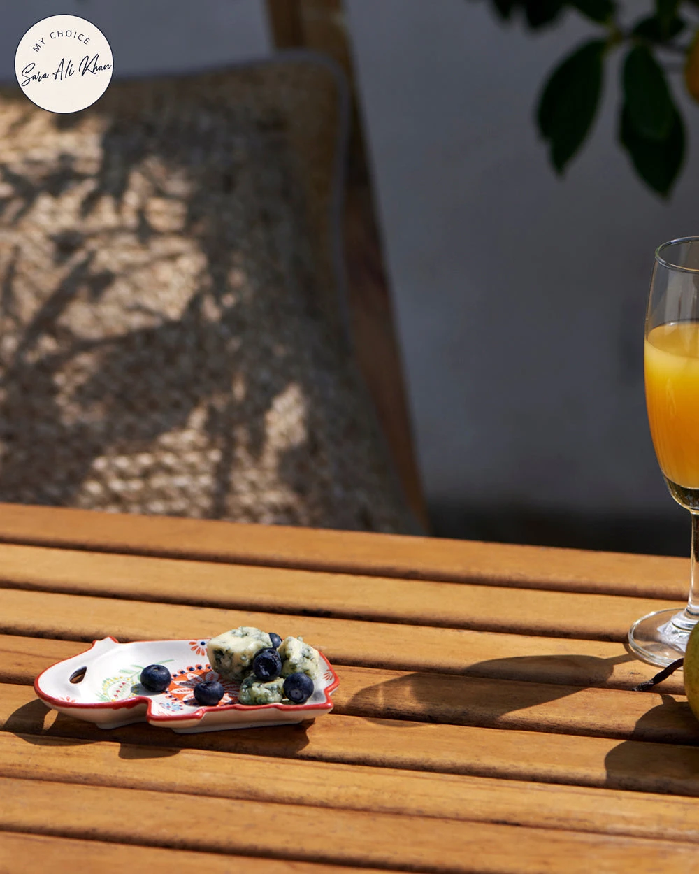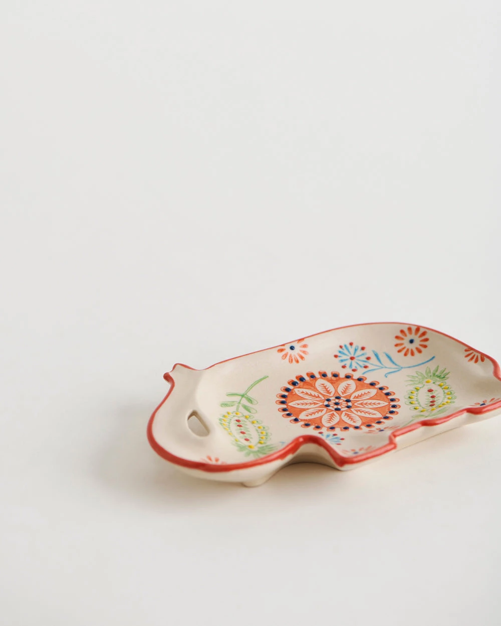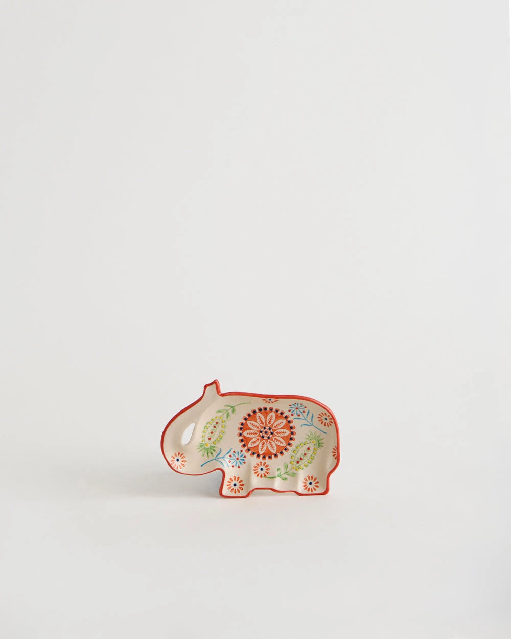 Serve in style with this platter shaped like the great Indian tusker. Make it a part of your table setting to add an element of quirk in a sea of predictable ovals, circles and squares. A smattering of colour with flora and fauna motifs on a beige base makes it perfect for serving all kinds of canapes, finger foods and even desserts.
