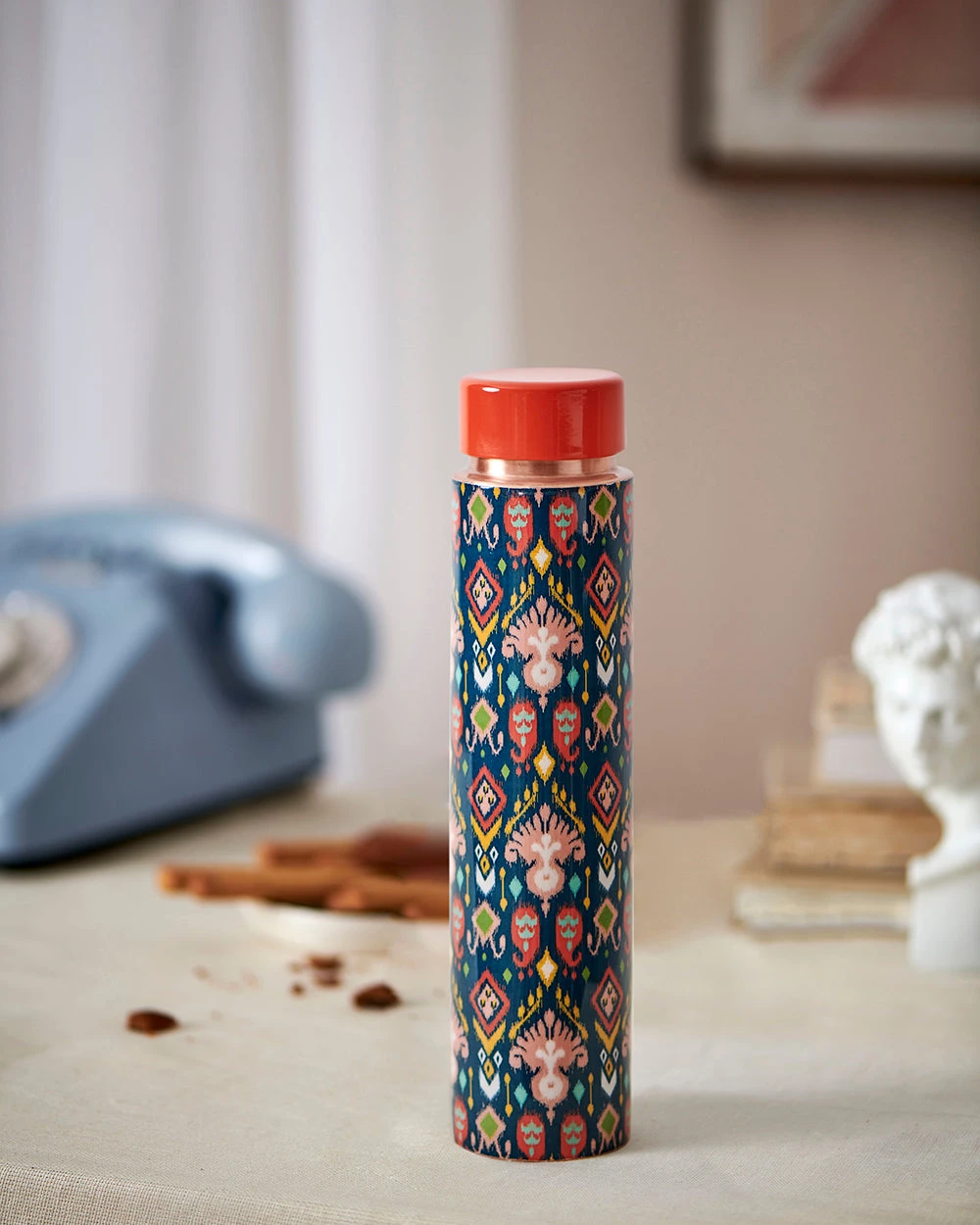 You deserve to drink from something beautiful! Copper Bottle is a reusable water bottle made from copper, chrome, and stainless steel. We love the earth and want you to do the same by reducing your plastic footprint. With this eco-friendly bottle, you’ll be drinking safe, purified water that’s free of algae and bacteria. The Indie Ikkat Copper Bottle is ideal for carrying liquids such as water, juice, smoothies, and other beverages. They’re lightweight and convenient to carry. It’s spill-proof, thanks to the airtight lid. While sipping from this refreshing bottle, refresh yourself.