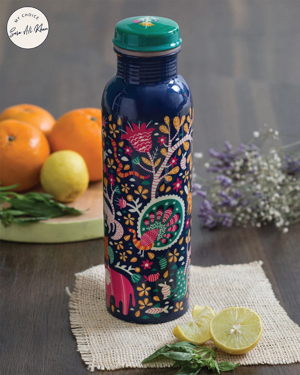 This sleek and stunning copper bottle features a Chumbak original design that is locally made in India by skilled artisans. These bottles are a great way of staying hydrated and healthy all through the day!