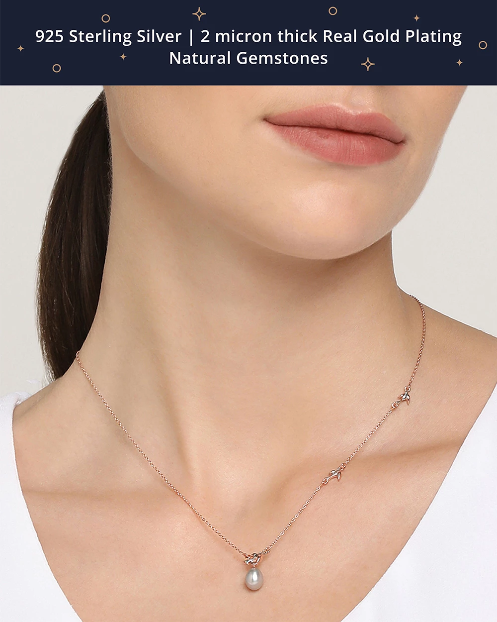 Do you remember being in absolute awe of a flight of birds in the sky? This magical memory led us to create the Morning Chirps necklace. A delicate piece of jewellery, it showcases miniature birds lined up asymmetrically, creating an impression of movement, while a grey pearl adds gravitas and charm.