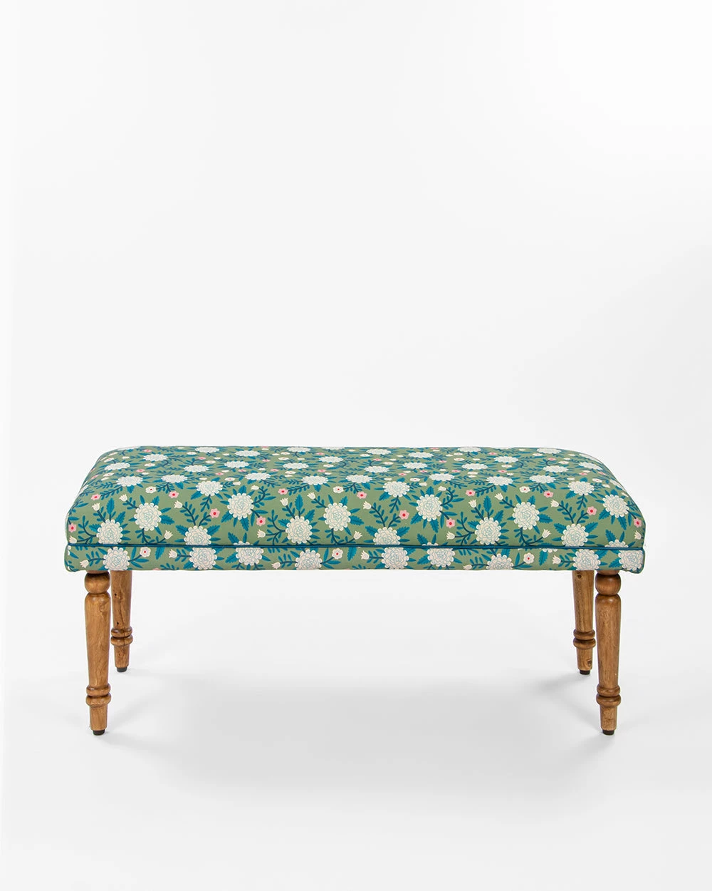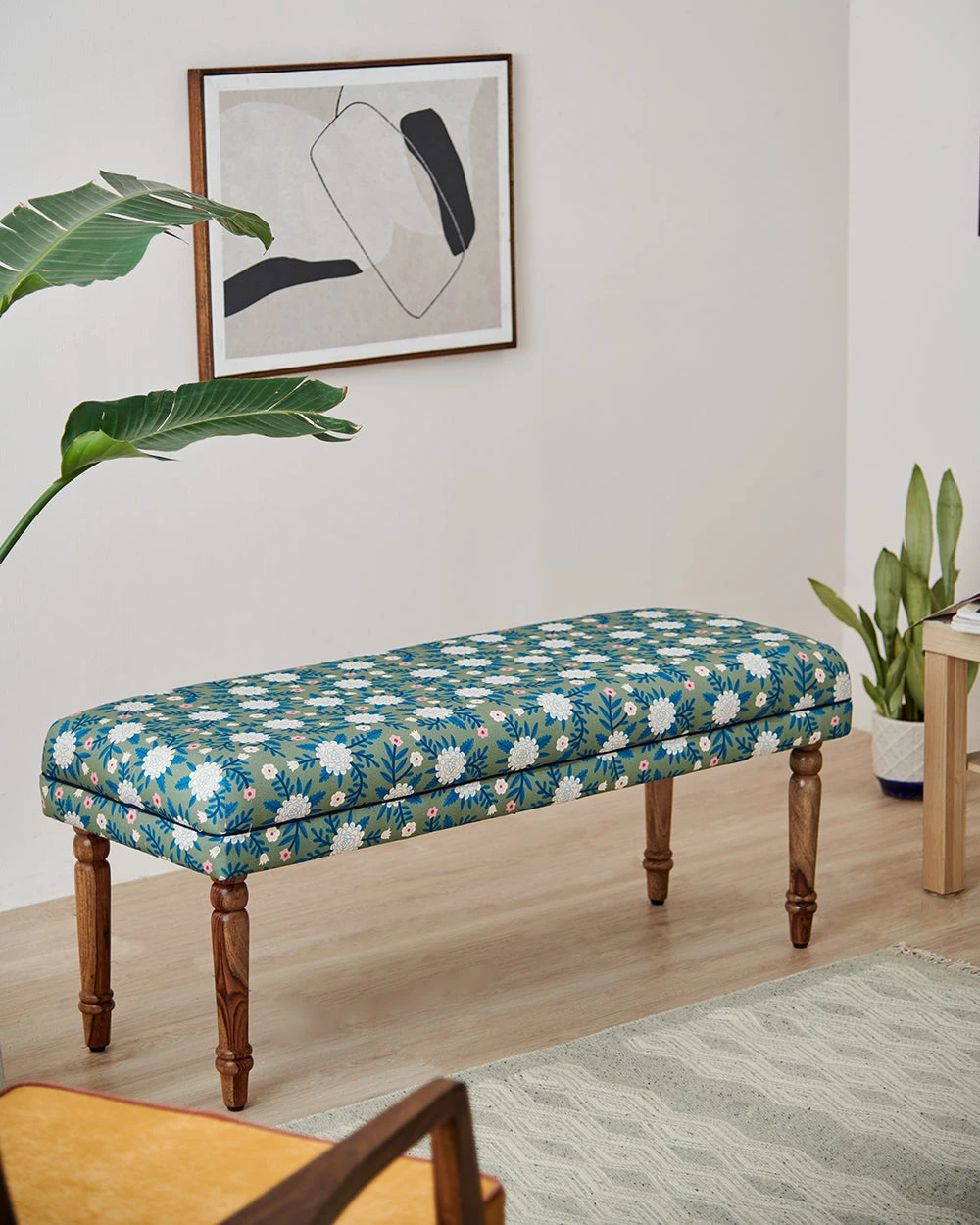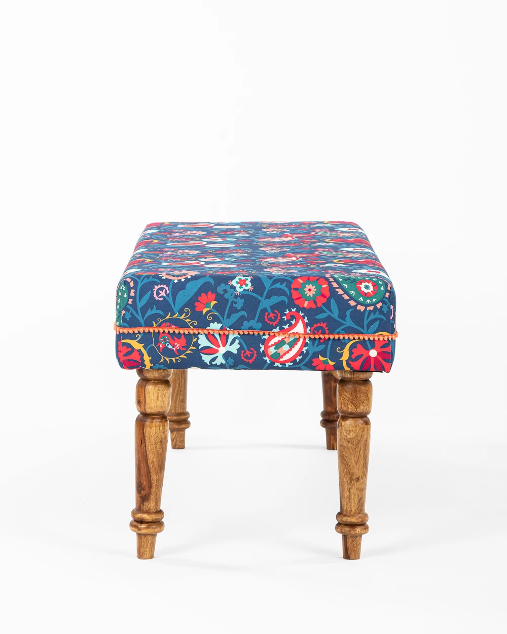 Our Nawaab Bench is inspired by Awadhi royalty. A perfect piece of furniture for that vintage spin to your balcony or living room. This bench is handcrafted in Mango wood and upholstered with high-density foam for utmost comfort and durability. You can place this bench in your entryway, in your bedroom corner or next to your bed or even spruce up your Work From Home space by placing it in front of your desk.