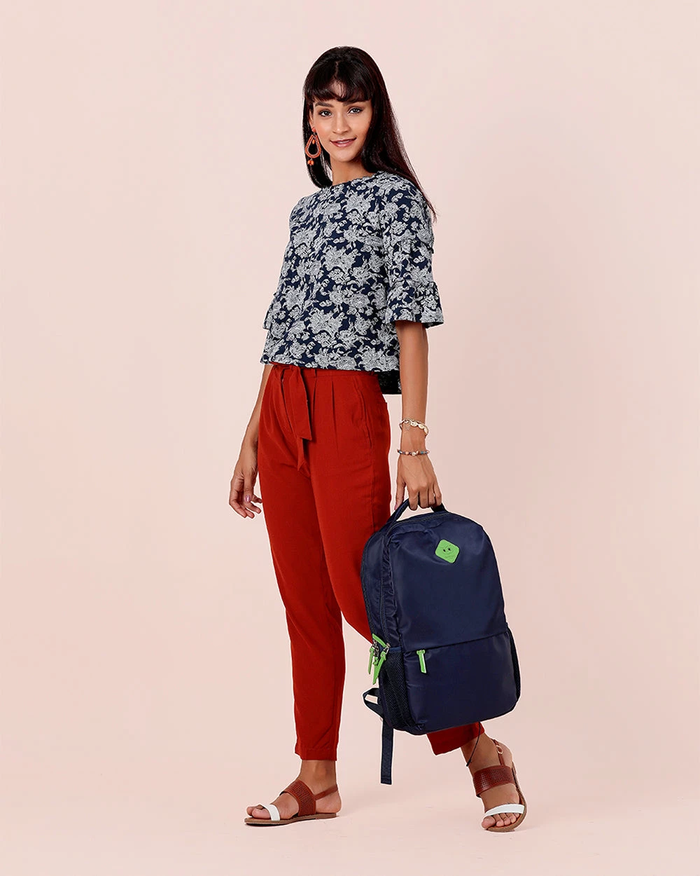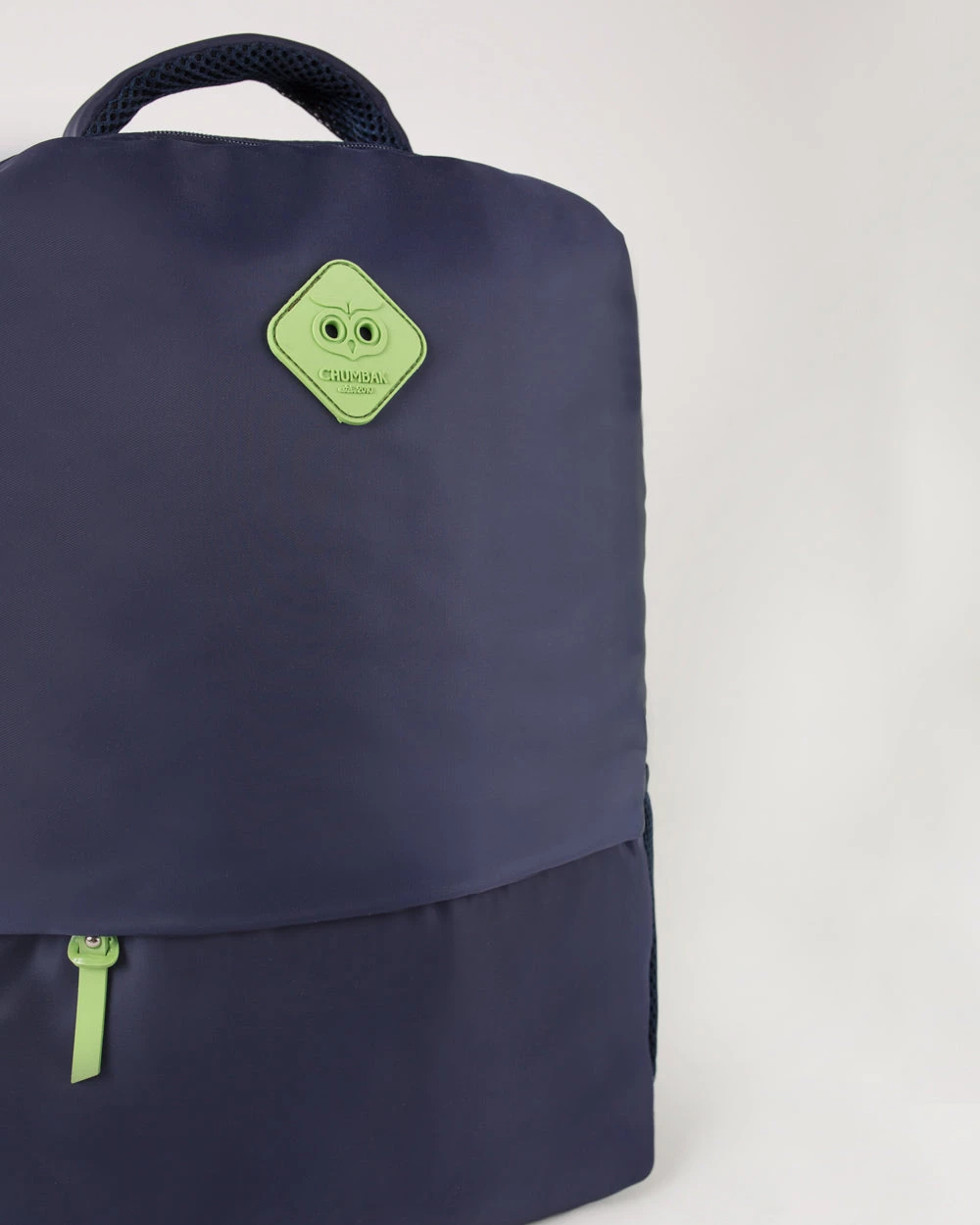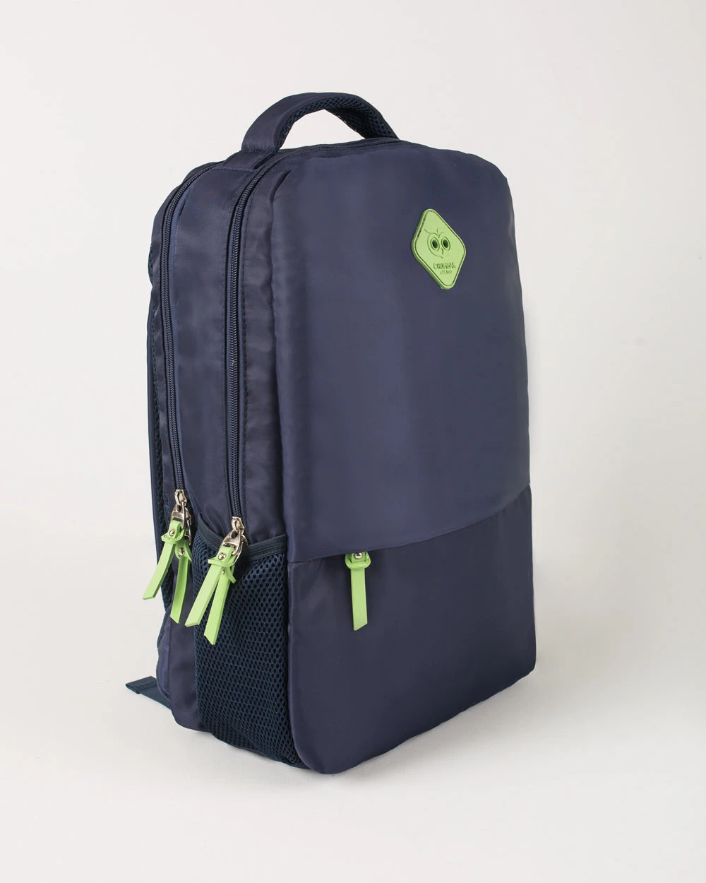 This solid classic Chumbak Navy blue backpack with neon detailing on zipper & class owl mnemonic. This sleek backpack has everything you need to get through your day: easy-to-access compartments, great storage space, and adjustable shoulder straps. It has a PU and polyester make and is particularly great for carrying laptops, iPads, and other gadgets.