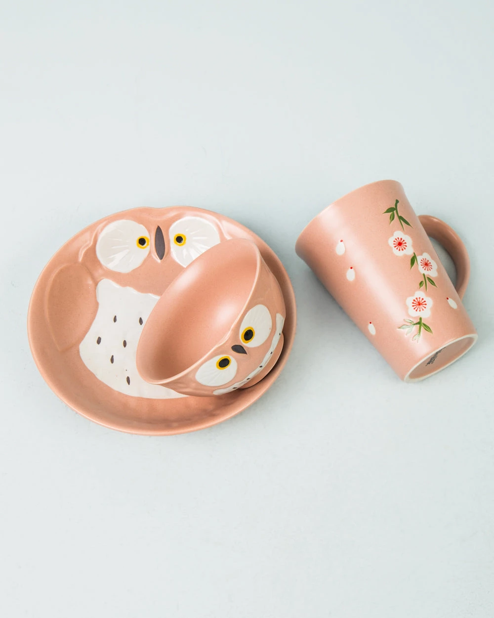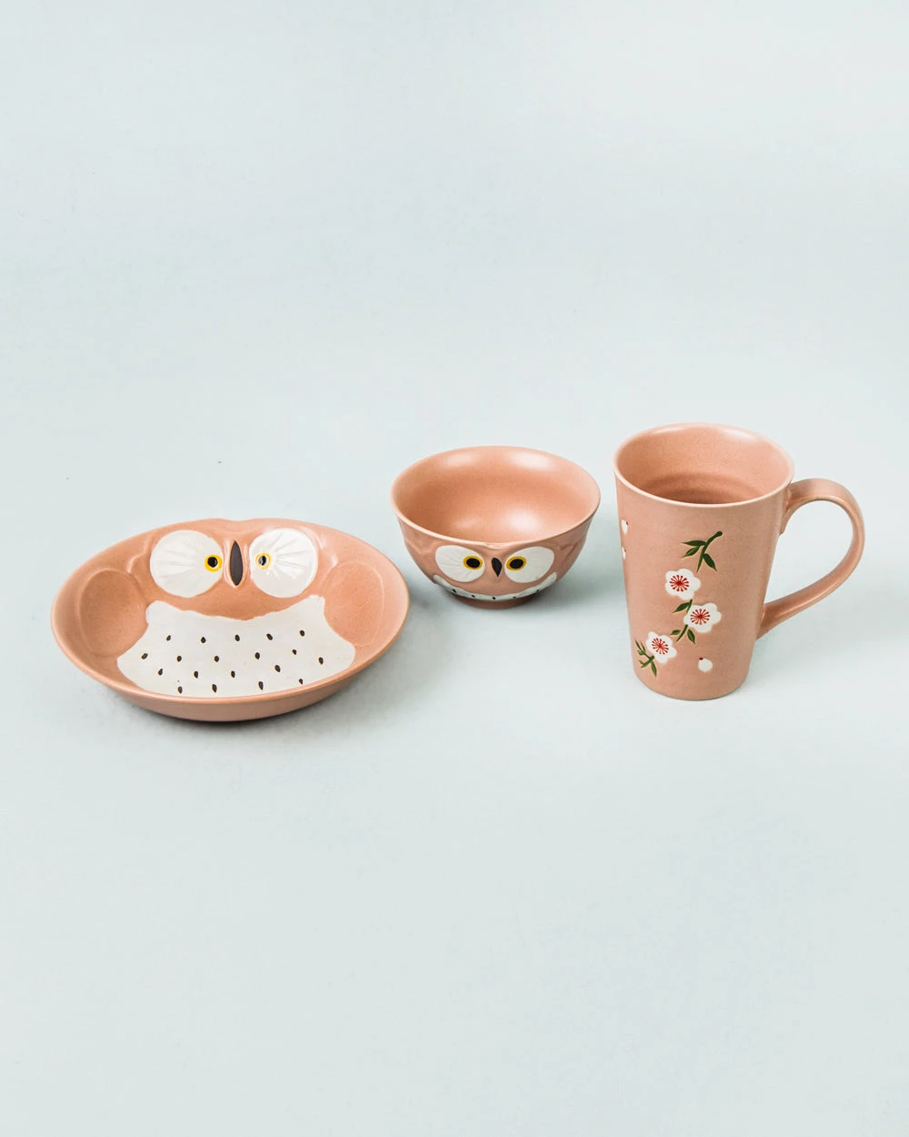 A pastel brown colour scheme with owl and floral motifs, this 3-piece set is ideal for those indulgent Sunday morning breakfasts! Made from high-quality porcelain, this set is a great gift for your brekkie-obsessed buddies! Pairs well with our floral table linen collection.