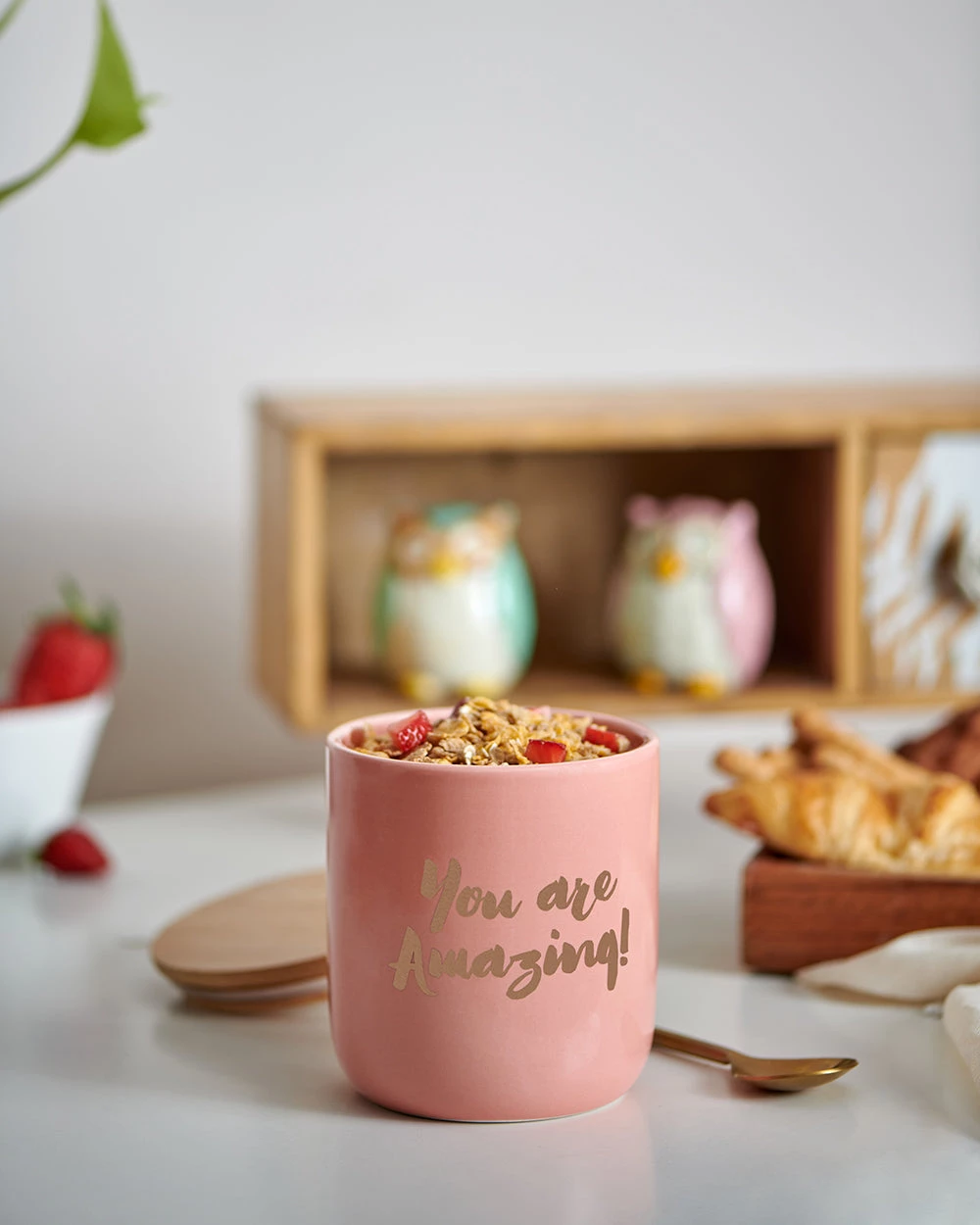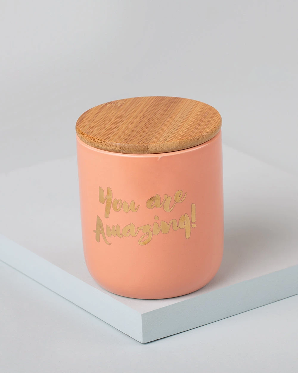This handcrafted, peachy-pink ceramic jar blends into any table, kitchen, or living area. Use it to store your sweets, cookies, or nuts. The jar comes with an wooden lid that keeps your eatables fresh and delicious! It’s the perfect gift for all coffee lovers.