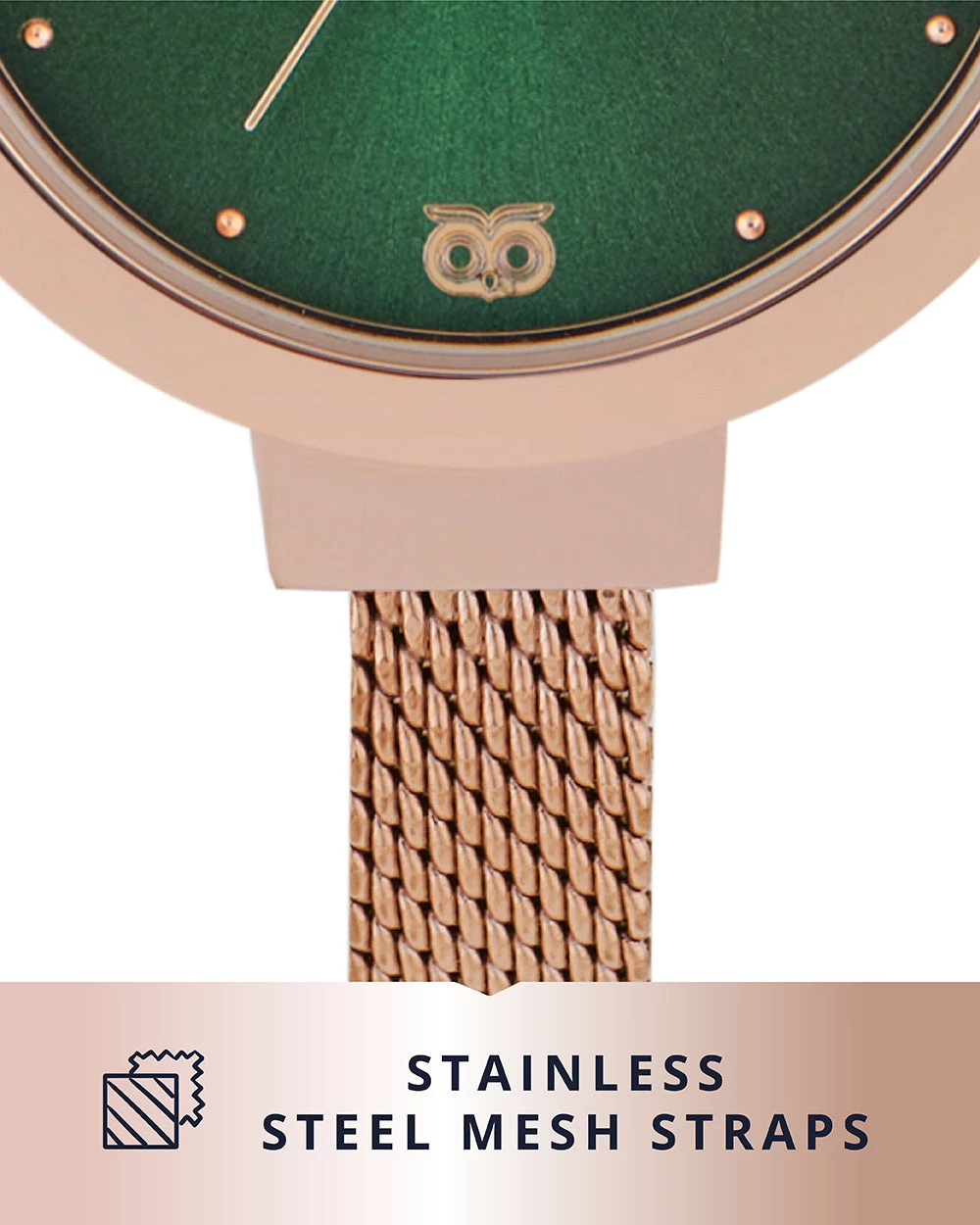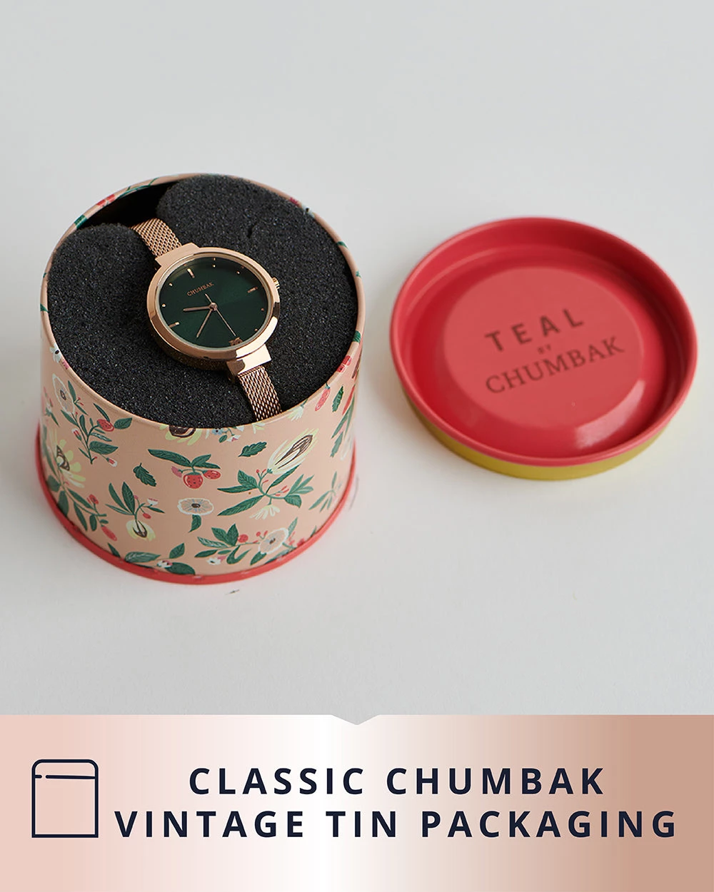 Our Stainless Steel Sacred Emerald Watch with a dual finish Sunray dial that makes for a gorgeous accessory to your everyday look. The straps are made from Stainless Steel mesh and the dial has a glass encasing. Our watches come in a joyful vintage tin packaging, perfect for gifting.
