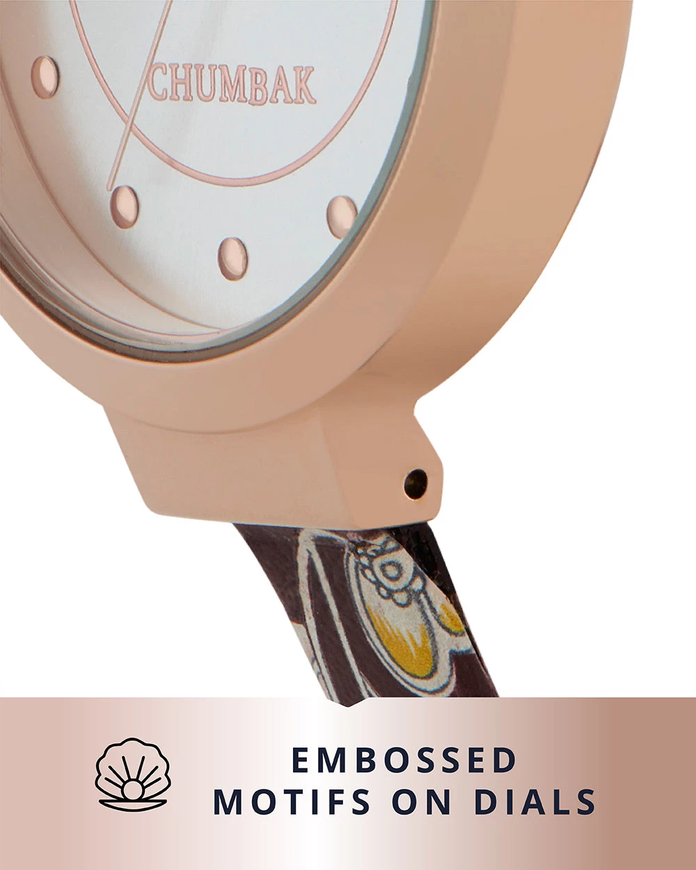 Crafted for a joyful everyday, the Stainless Steel Subtle Hues Watch from Chumbak will adorn your wrist like a dream. The mother of pearl dial and the colorblock needles gives an uptown look and feel to the watch. The 35mm rose gold case and the printed leather strap makes it an apt pick for the modem woman of today. Our watches come in a joyful vintage tin packaging, perfect for gifting.