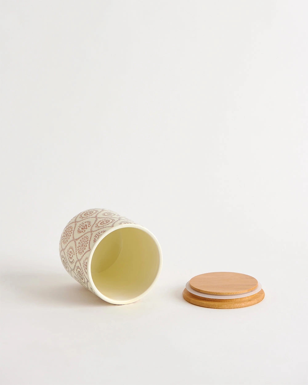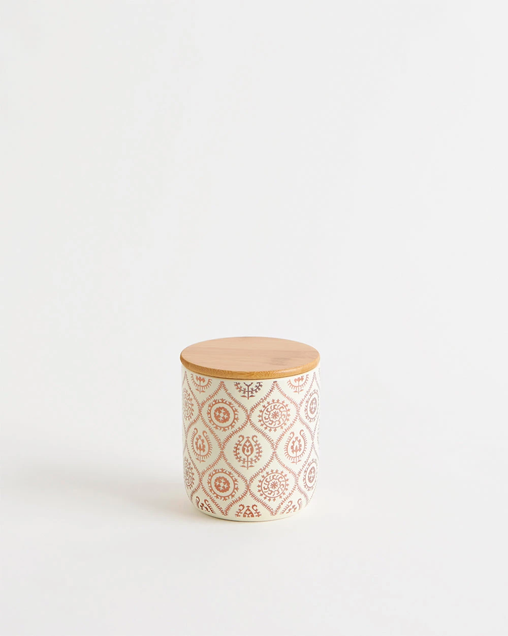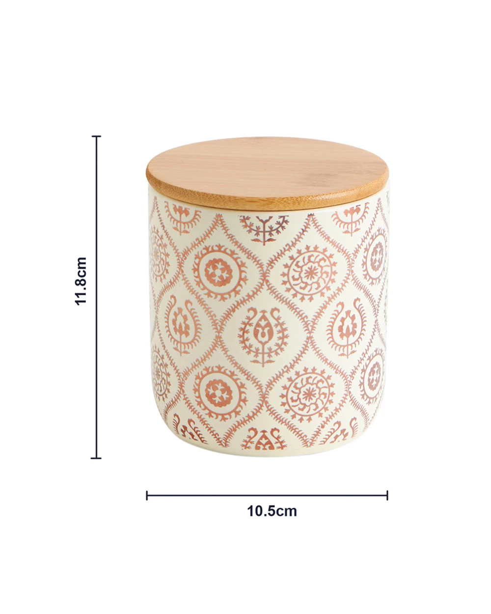 Our Suzani inspired white & gold airtight jar will elevate the look and feel of your kitchen from drab to fab! A beautiful gold print on a white base goes perfectly with the natural bamboo lid. Ideal for storing your coffee break specials like dry nuts, biscuits, teas, etc., these ceramic jars are also microwave-safe.