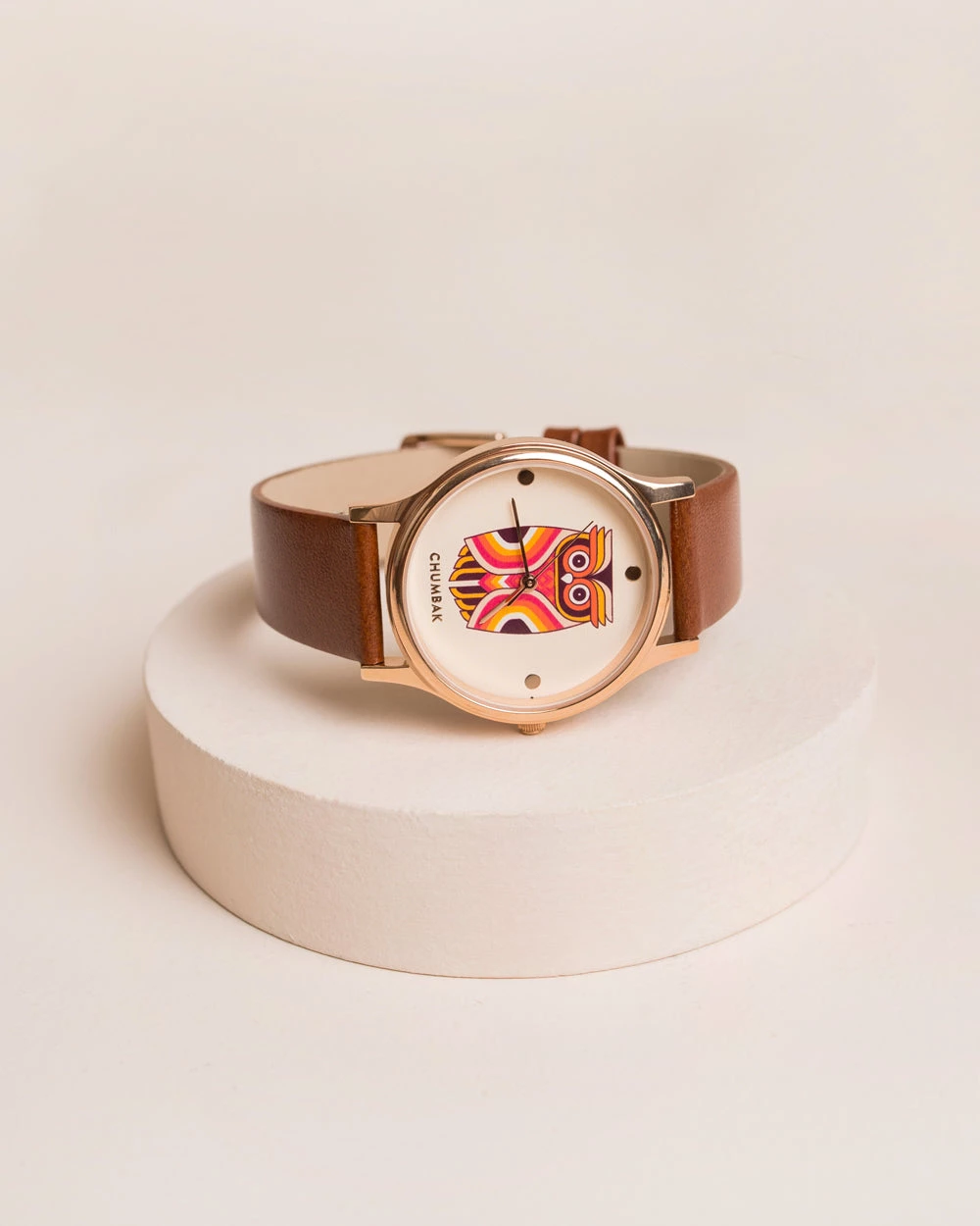 Add a pop of colour to your day with the TEAL by Chumbak Aztec Owl Leather Wrist Watch. Powered by a quartz mechanism, with a slim, sleek build and sturdy, matte Leather strap, this watch will add a fun pop of colour to your look. The printed, glass encased dial adds a delightful Chumbak touch that makes for memorable adventures.