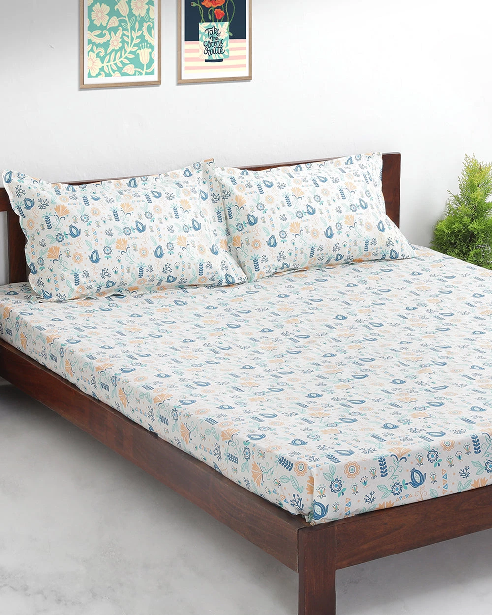 Snooze in style with our TEAL by Chumbak Bahamas Beach Bedsheet – Queen size, White. This set is made of 100% cotton and is a part of our TEAL by Chumbak range. It features a boho-themed original Chumbak design and will look great in your bedroom. Pair it with our boho-themed cushion covers. It measures 88″ x 100″. Wash it seperately, remove promptly after wash & dry. Tumble dry on low. Do not bleach. Iron if needed.