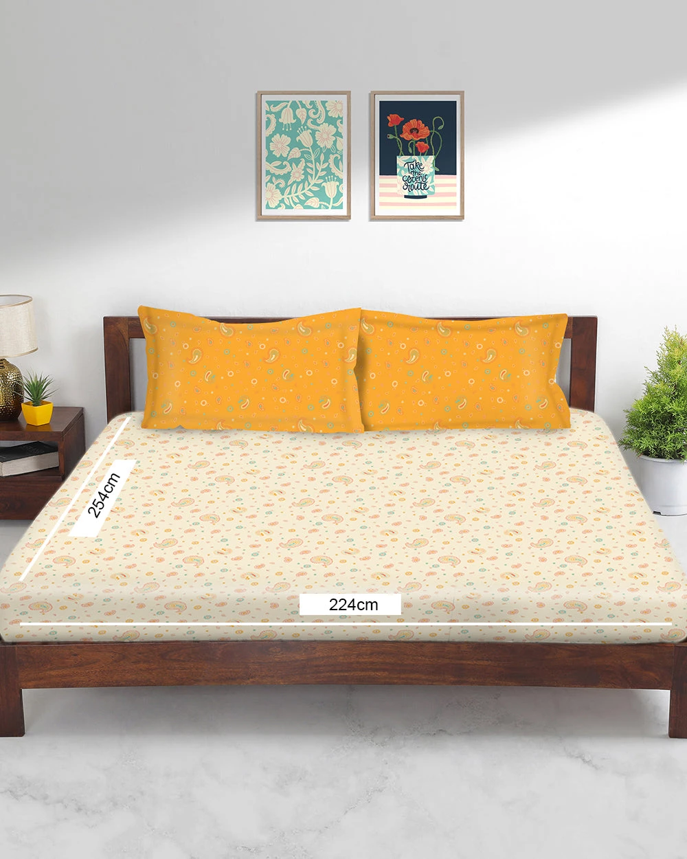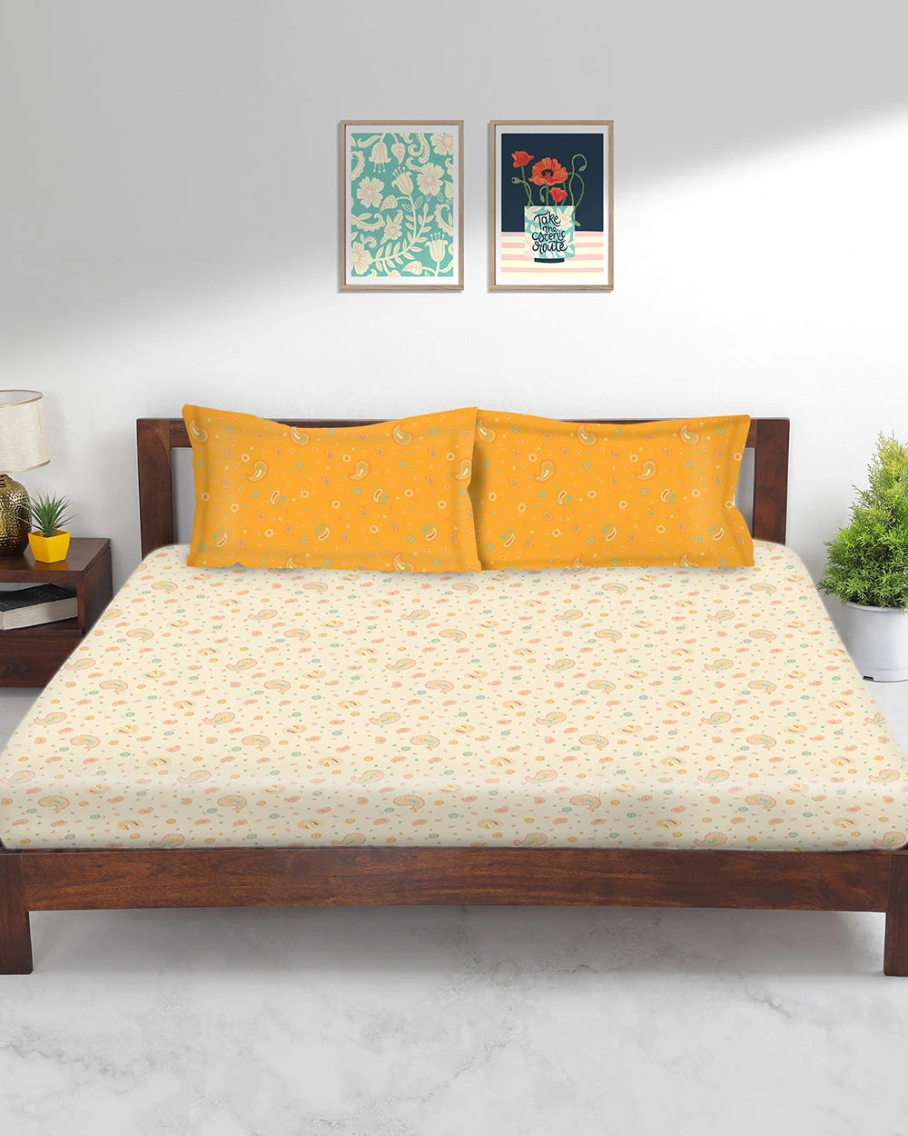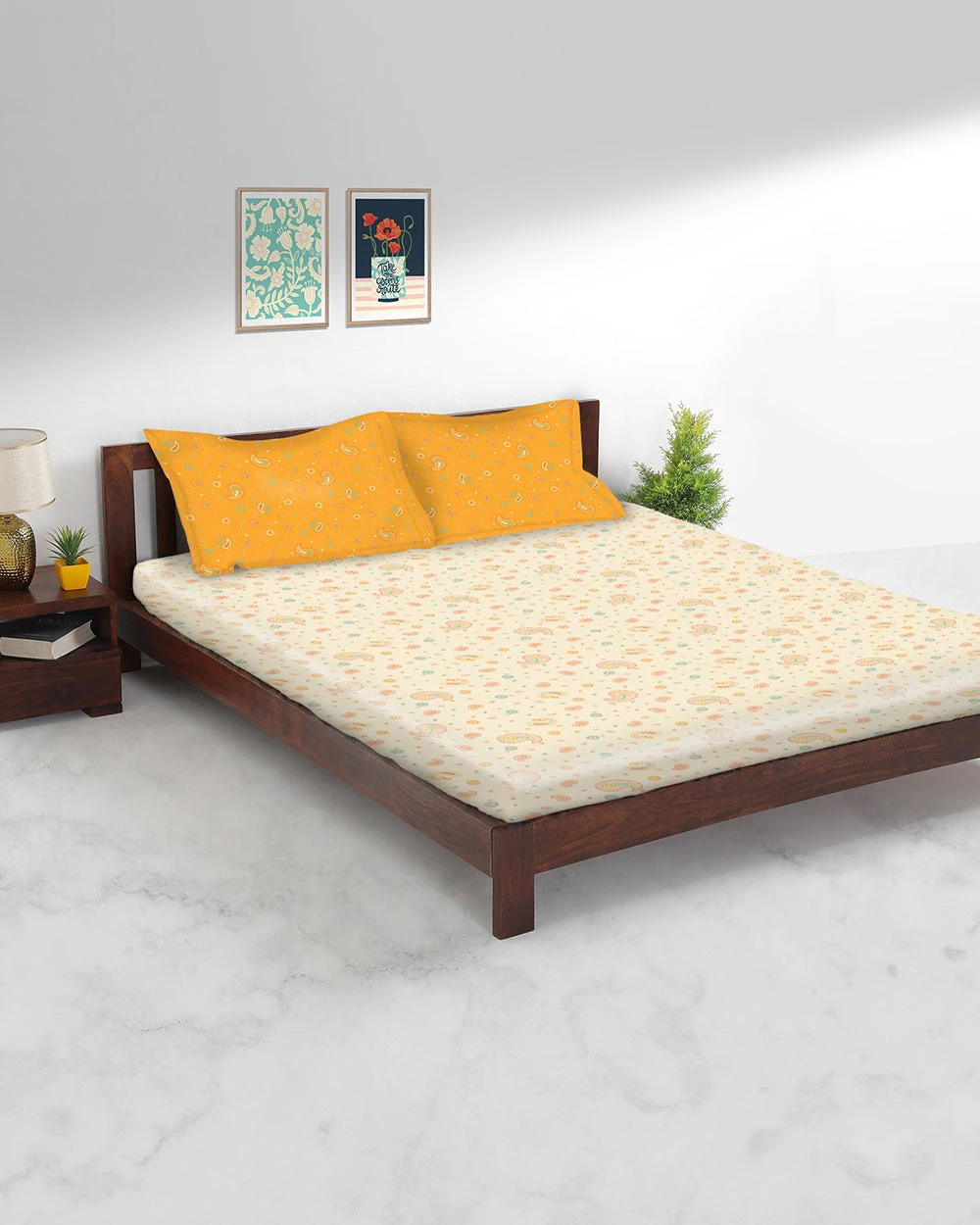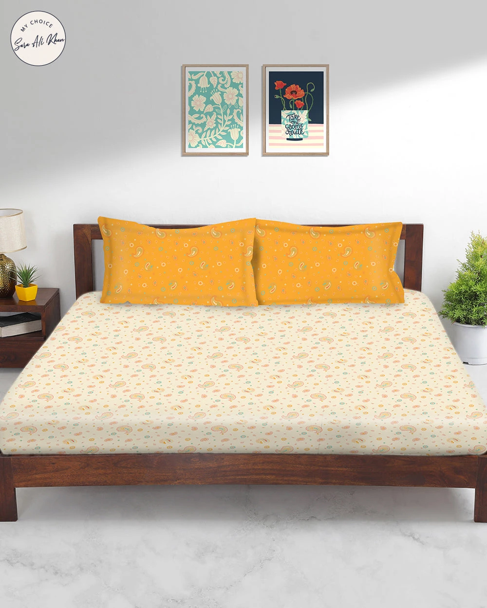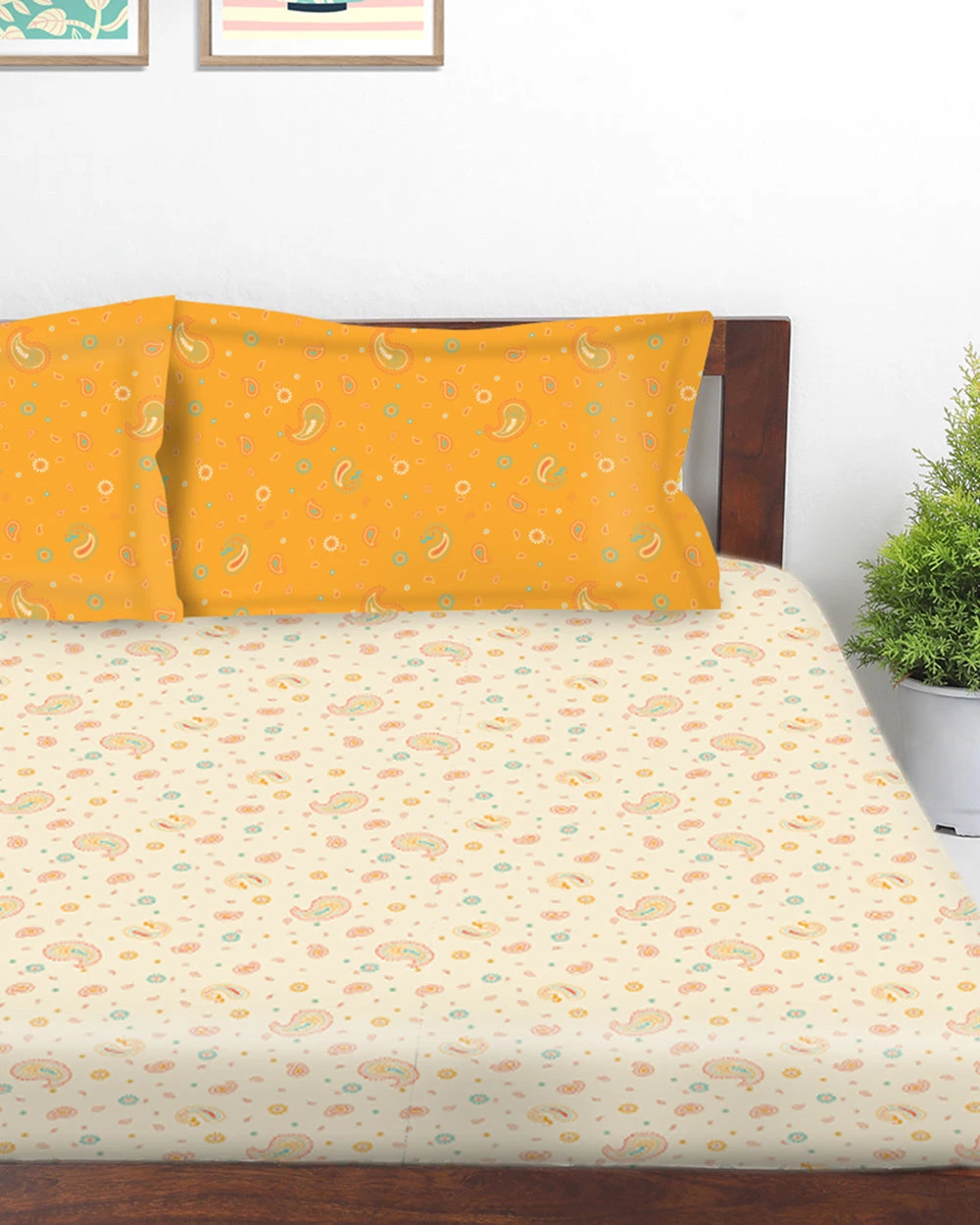 Snooze in style with our Teal By Chumbak Cypress Paisleys Double Bedsheet Set – Queen size. This set is made of 100% cotton and is a part of our TEAL by Chumbak range. It features a Flora and Fauna the themed original Chumbak design and will look great in your bedroom. Pair it with our floral-themed cushion covers. It measures 88″ x 100″. Wash it seperately, remove promptly after wash & dry. Tumble dry on low. Do not bleach. Iron if needed.