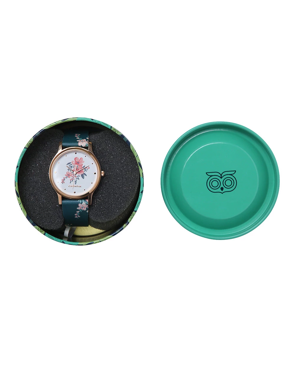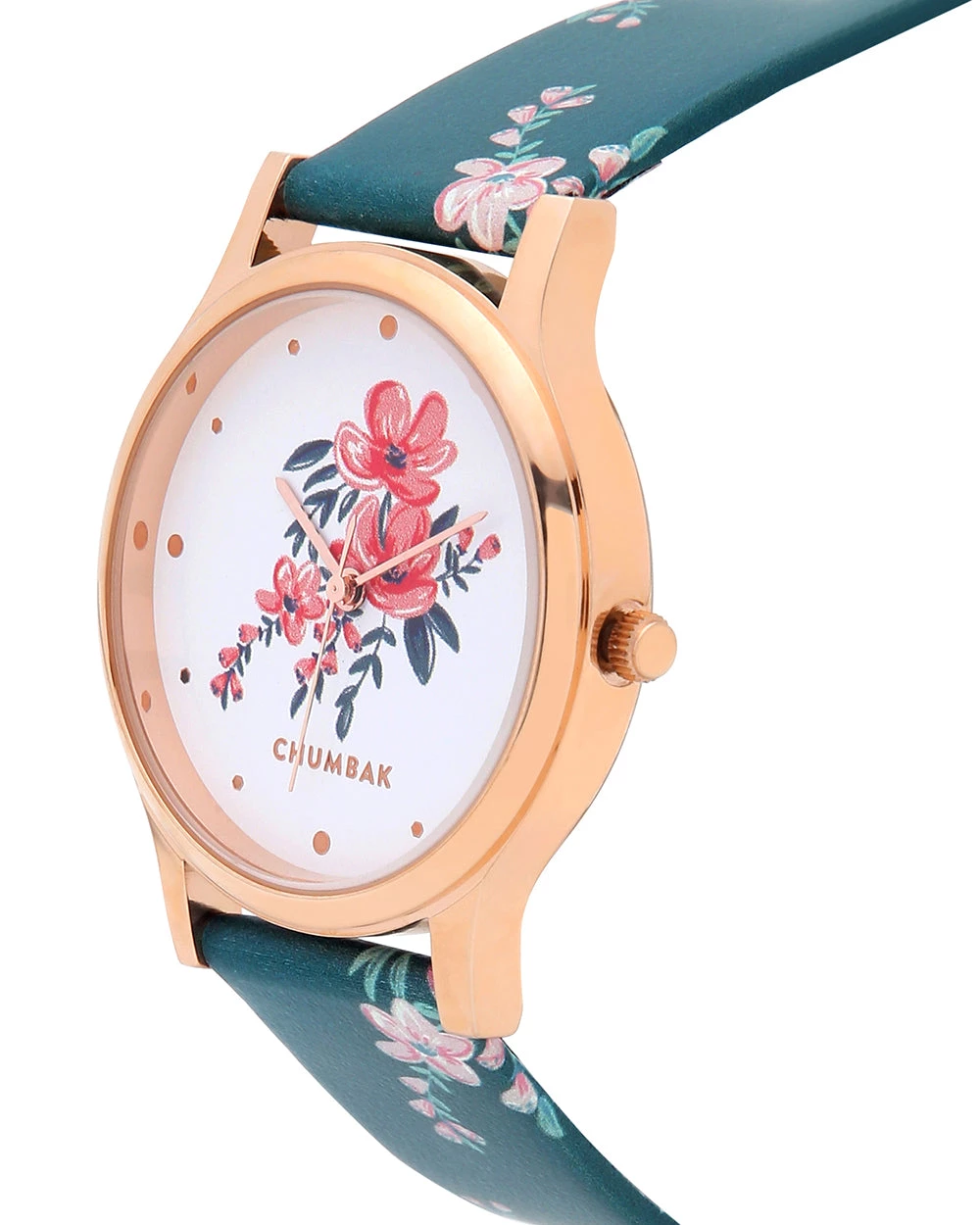 Our TEAL by Chumbak Sunshine State watch is a must have for Spring time. An elegant & playful original Chumbak design pairs well with a breezy dress or denims. It is made from PU and brass and is powered by Citizen 2035 movement. Our watches come in a joyful vintage tin packaging, perfect for gifting.