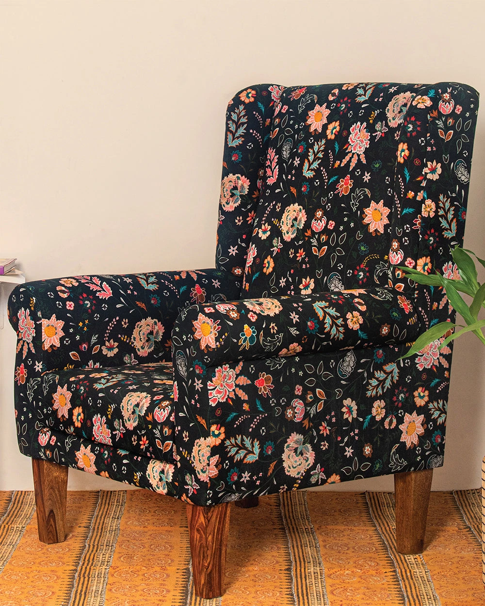 Our Begum Wing Chair is a perfect blend of English culture paired with the very vibrant & joyful Chumbak aesthetic. Handcrafted with Sheesham wood and upholstered with high-density foam for utmost comfort and durability, this bench is the most versatile accent piece of furniture you can have in your home. Perfect for Netflix marathons, a cozy reading corner or for some me time with chai. Pair it with a comfy throw, a big plant and a lamp to create a space you can spend your entire day in.