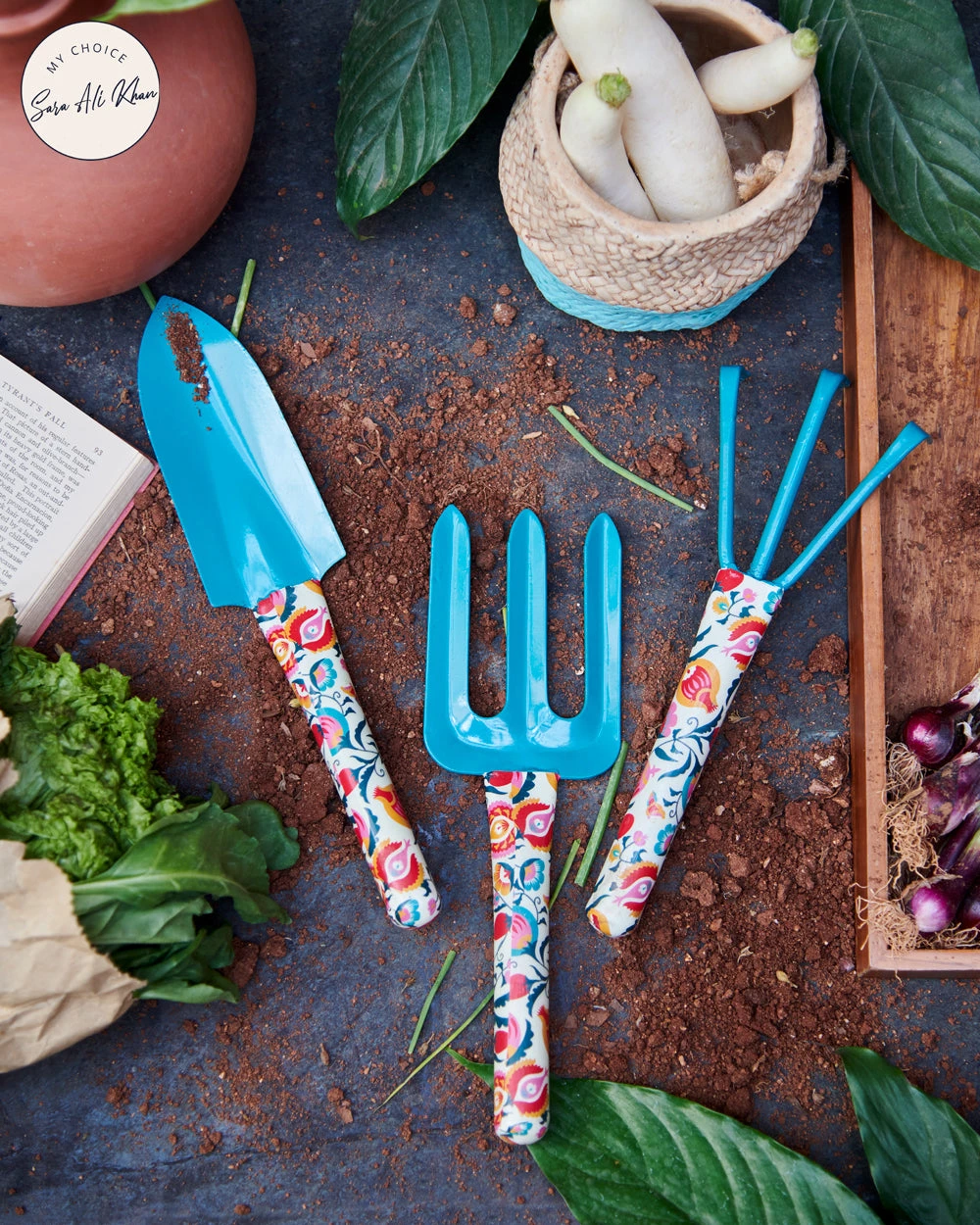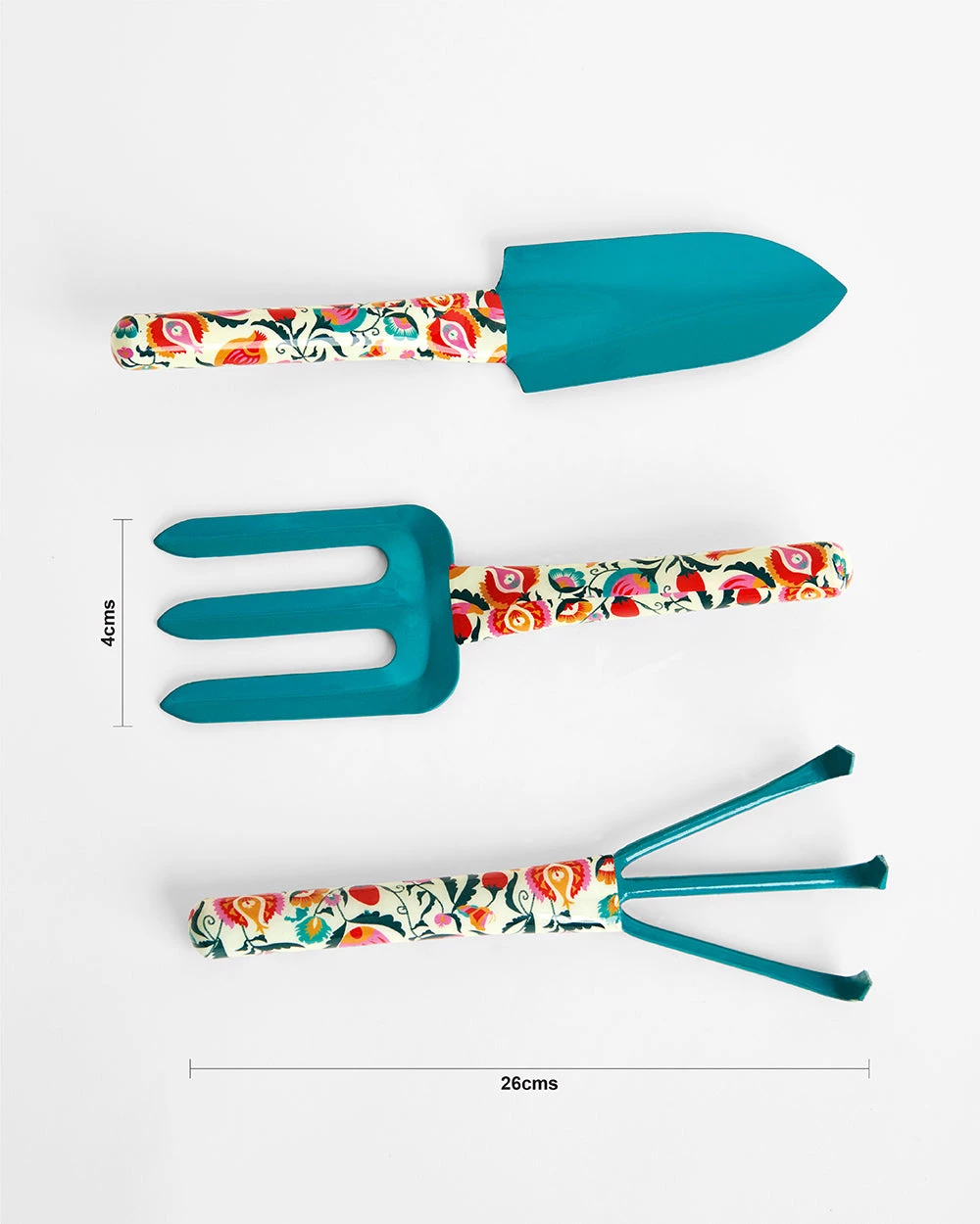 A perfect starter kit for a beginner green enthusiast or for a small home garden, this set of three garden tools is a no brainer. It consists of a shovel, a fork and a weeder and in true Chumbak style has been designed in a bright blue colour with a fun botanical print on the handle.