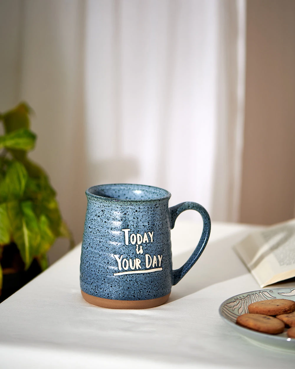 Seize the day with passion and gusto by sipping your morning coffee in our Today Is Your Day Blue Mug from Chumbak. Made with ceramic, one sip from this quirky blue mug is sure to elevate your mood and set it right for the day! Get this mug which will become more like a mentor and your best mate on those gloomy days.