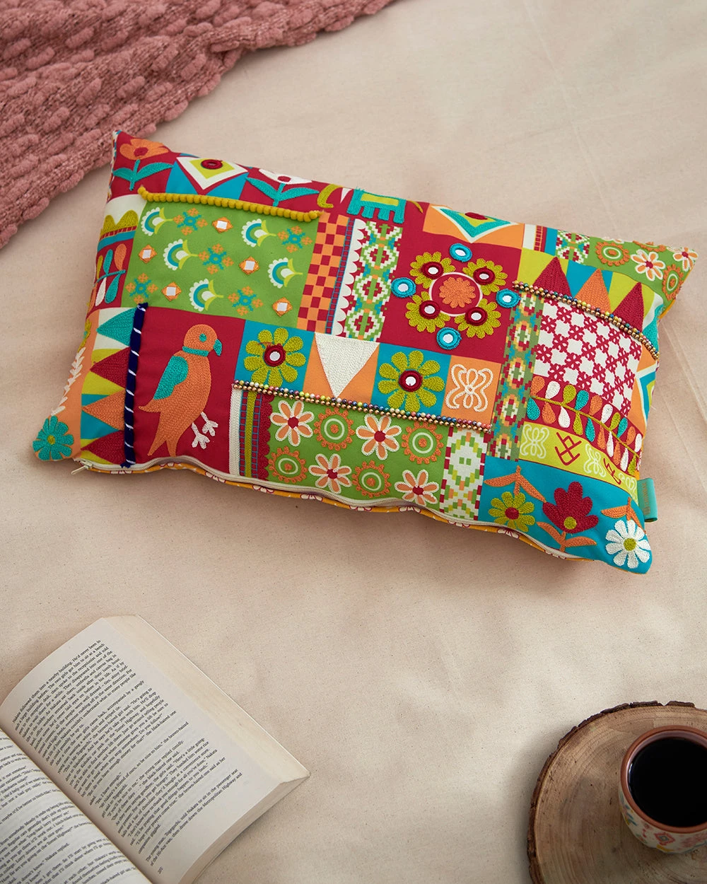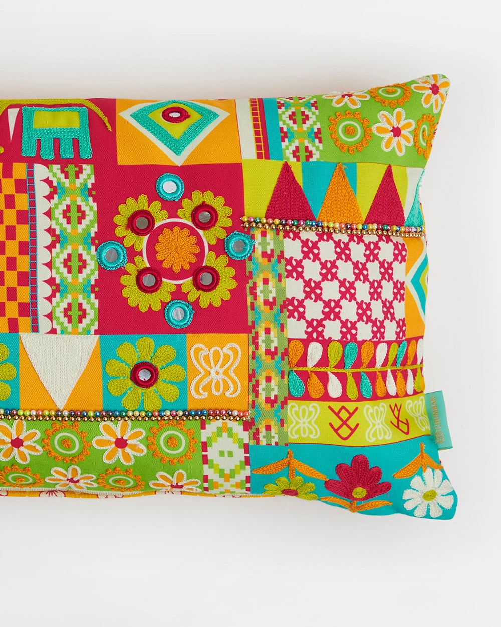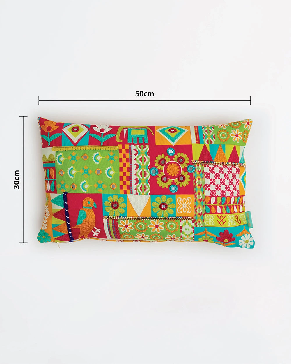 Make your living room feeling bright with our Totaa Bahar Cushion. The Kutch pattern on this intricately designed piece will ensure you have one more conversation starter in the living room. Add a pair to a muted couch for a vibrant corner.