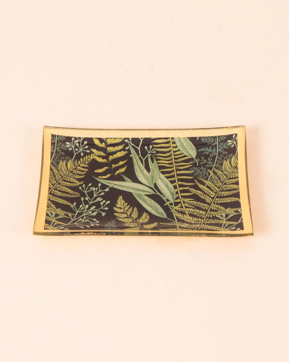 Inspired by lush green woodlands, this dark and glorious trinket tray is your go-to organizer for storing your small and big trinkets alike. This tray is made from glass, which adds to its elegance and charm.