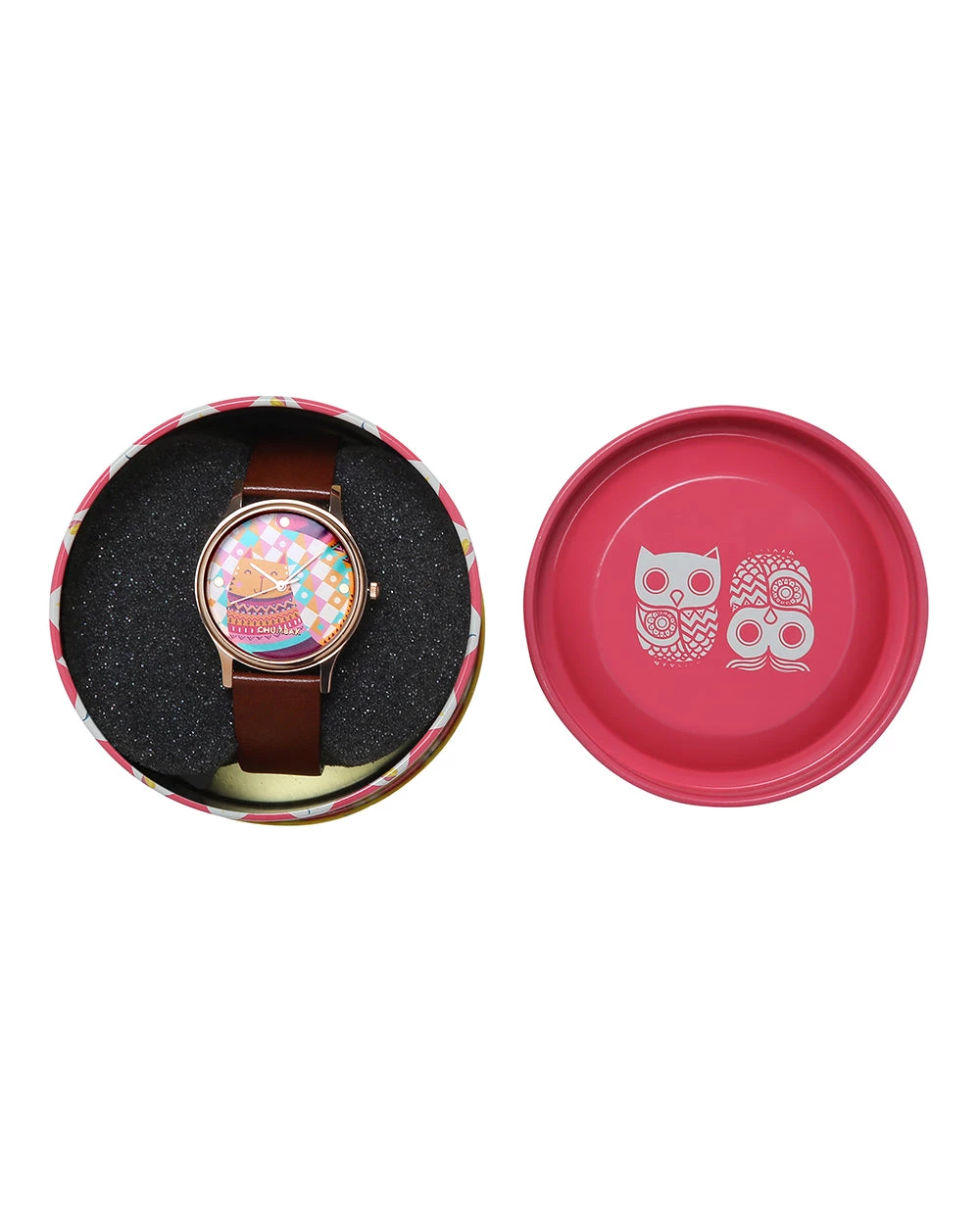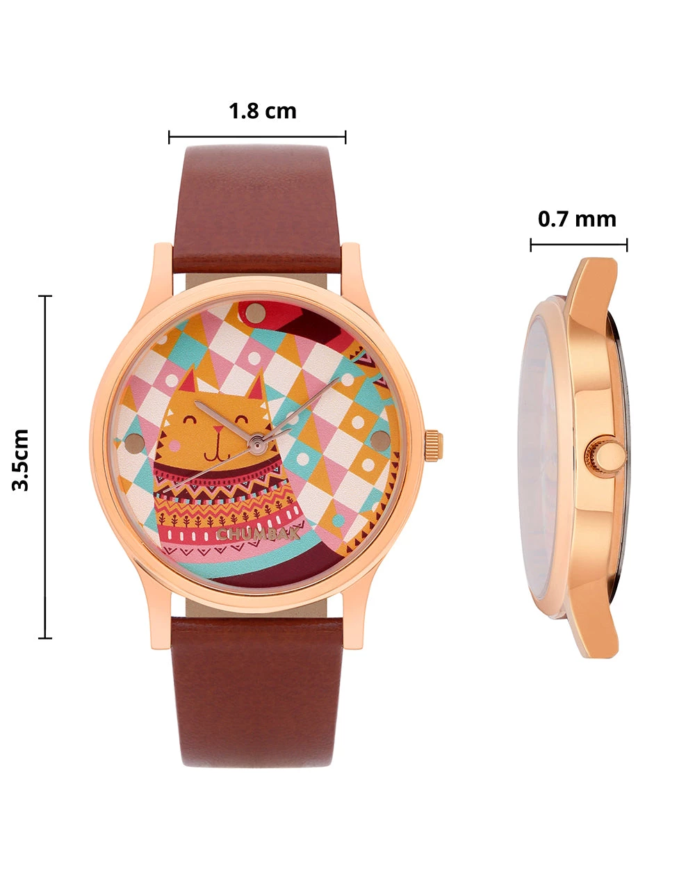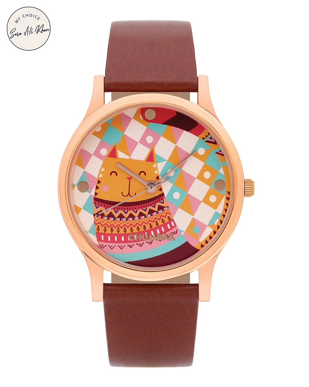 TEAL by Chumbak Aztec Cats Wrist Watch comes with quartz mechanism, slim build and sturdy, matte leather Strap. The printed, glass encased dial adds a fun pop of colour to your look.