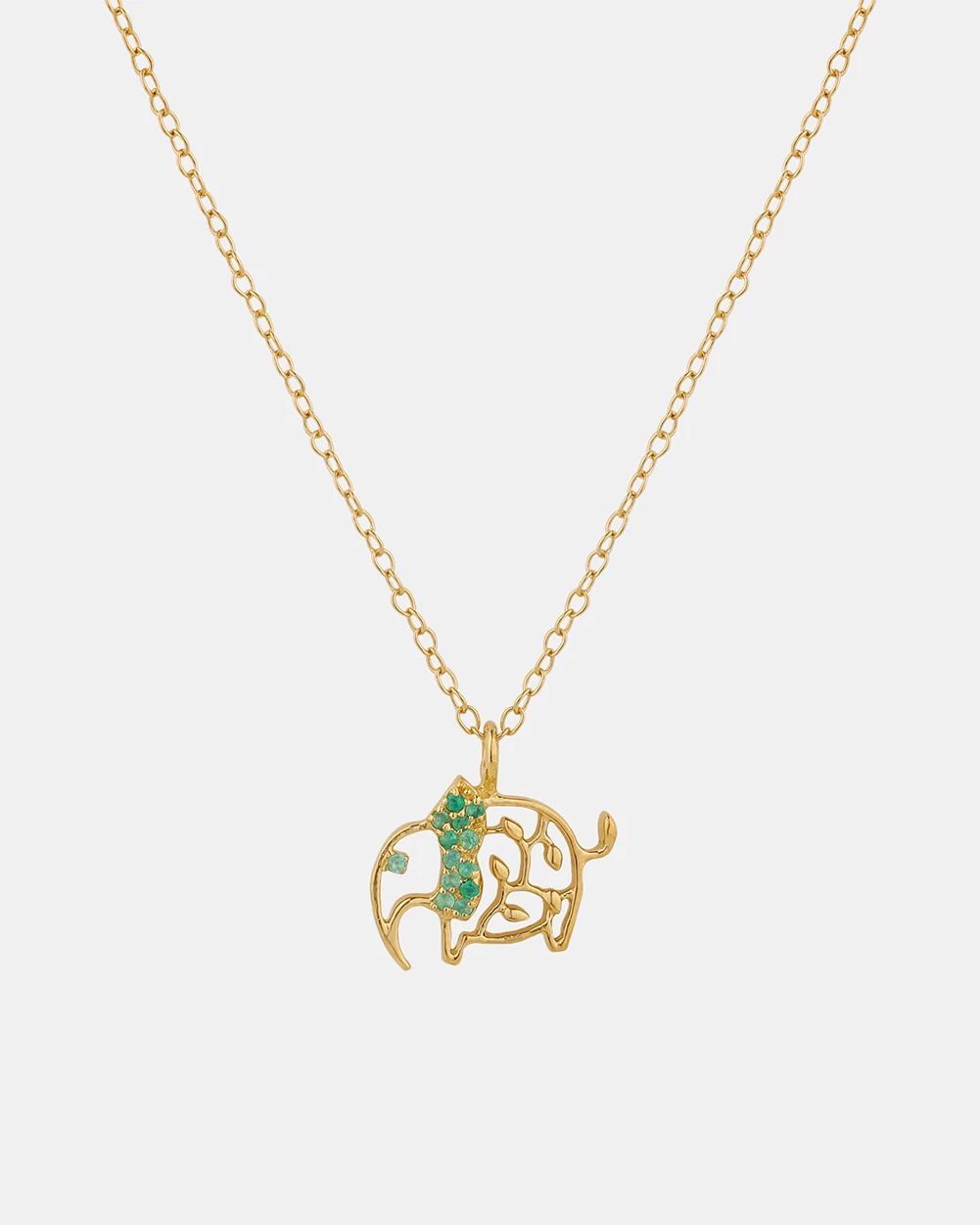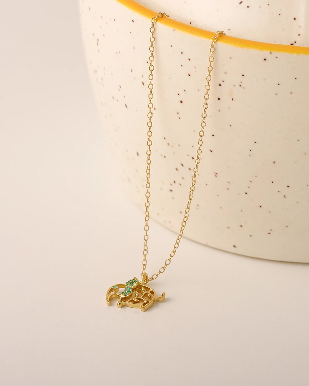 If you have been fawning over images of baby Yoda, you will melt into a puddle when you lay your eyes on our The Only Elephant in the Room necklace. A gold-toned dainty necklace dangles an adorable elephant with intricate lattice details and green onyx encrusted eyes and ears, making it an irresistible piece of jewellery. Wear with your Tiny Jumbo bracelet to get your accessory game on point!