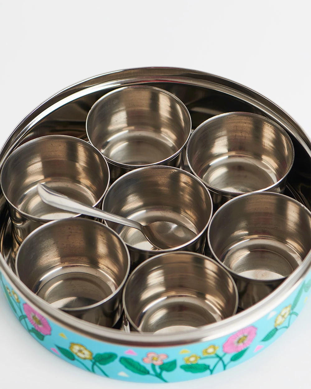 Add a whimsical touch to your kitchen cabinet with this Yellow Floral Steel Spice Box from Chumbak. Featuring an exquisite floral design, this stainless steel spice box can store all your daily spices in style to make your cooking sesh fun and delightful.